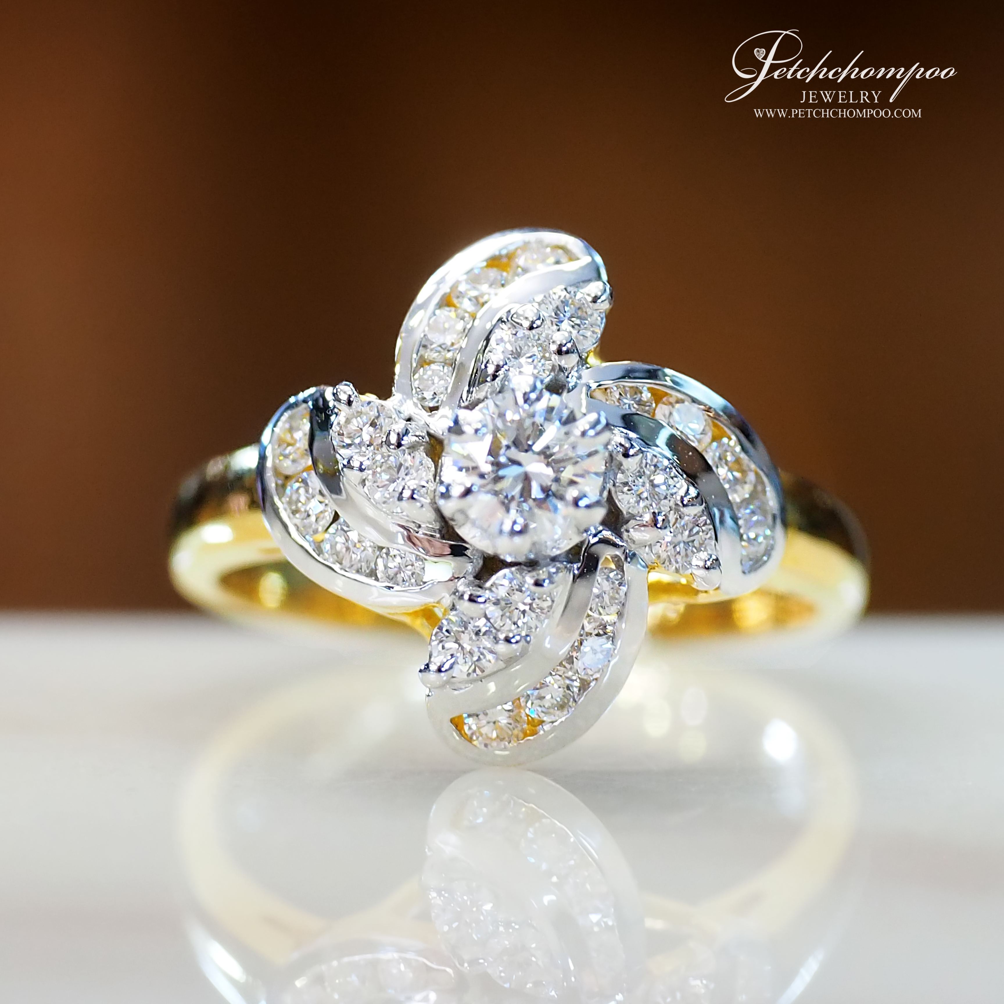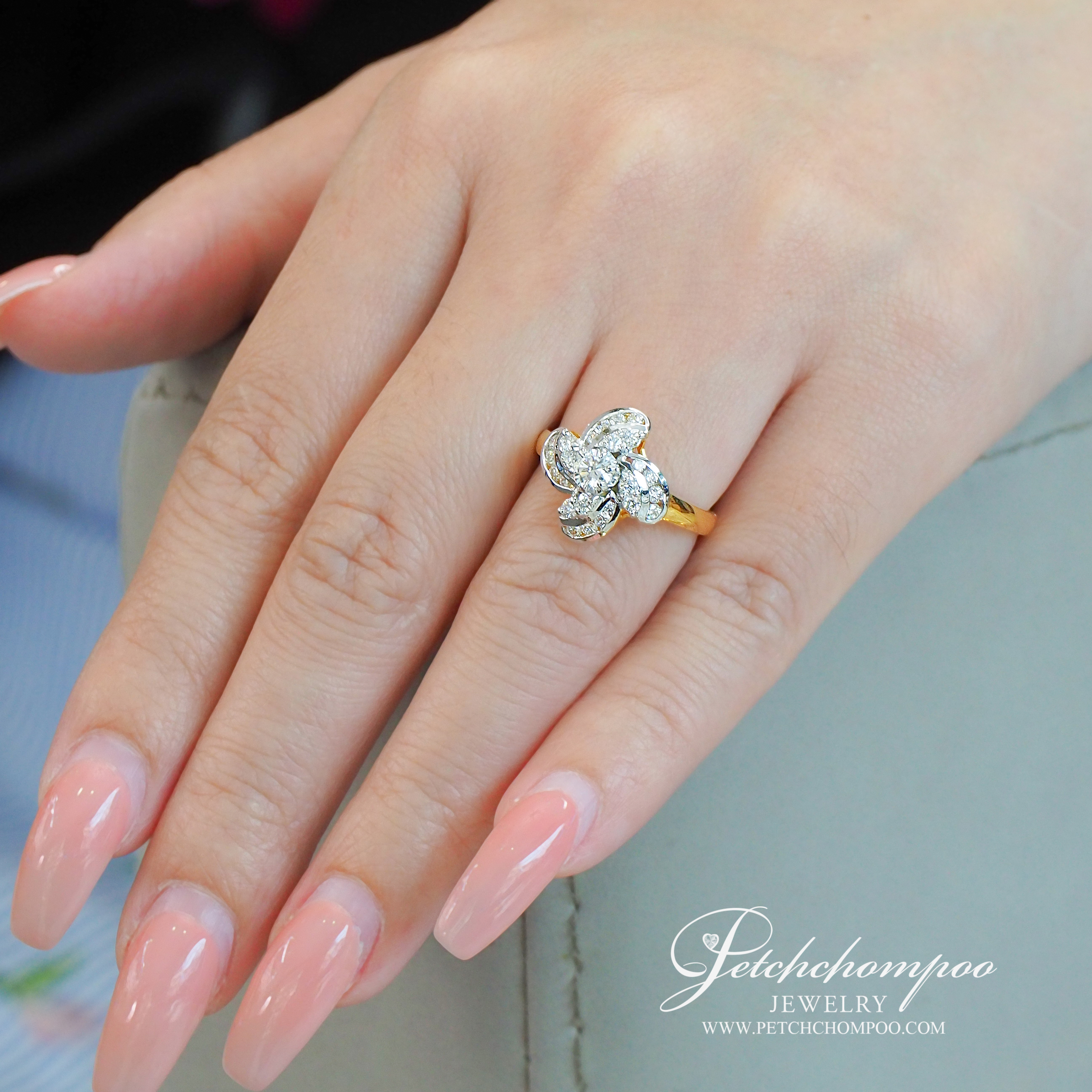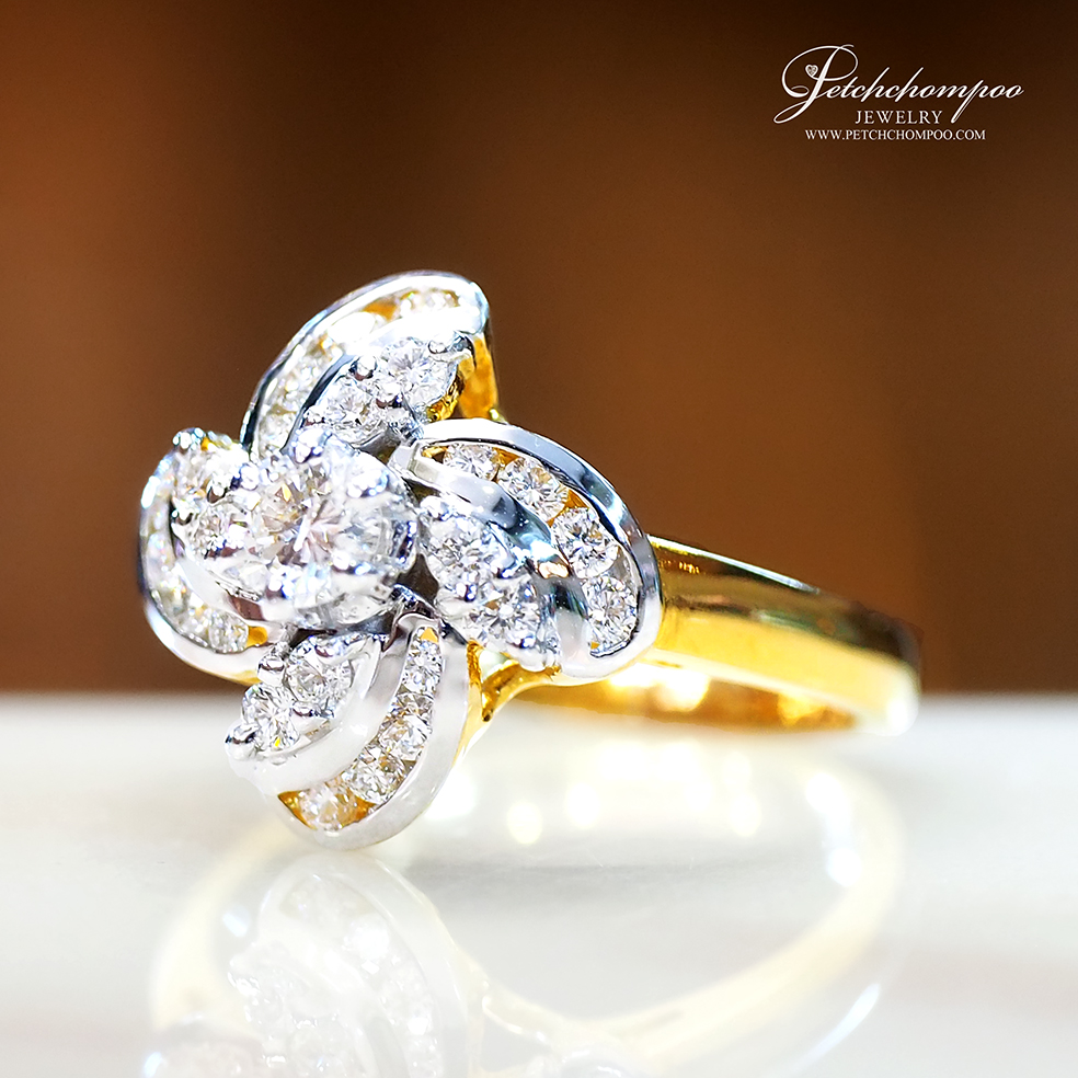 แหวนเพชรดีไซน์ดอกไม้หรูหรา ที่เบ่งบานอย่างสง่างามในทุกมุมมอง เพชรเม็ดกลางขนาด 0.21 กะรัต โดดเด่นตระการตา ท่ามกลางกลีบเพชรอีก 24 เม็ด น้ำหนักรวม 0.42 กะรัต เรียงร้อยลวดลายที่อ่อนช้อยงดงาม ตัวเรือนทองคำแท้ผสานทองคำขาว สะท้อนแสงระยิบระยับในทุกองศา เป็นแหวนที่เหมาะสำหรับผู้หญิงที่รักความหรูหราแบบมีเอกลักษณ์
