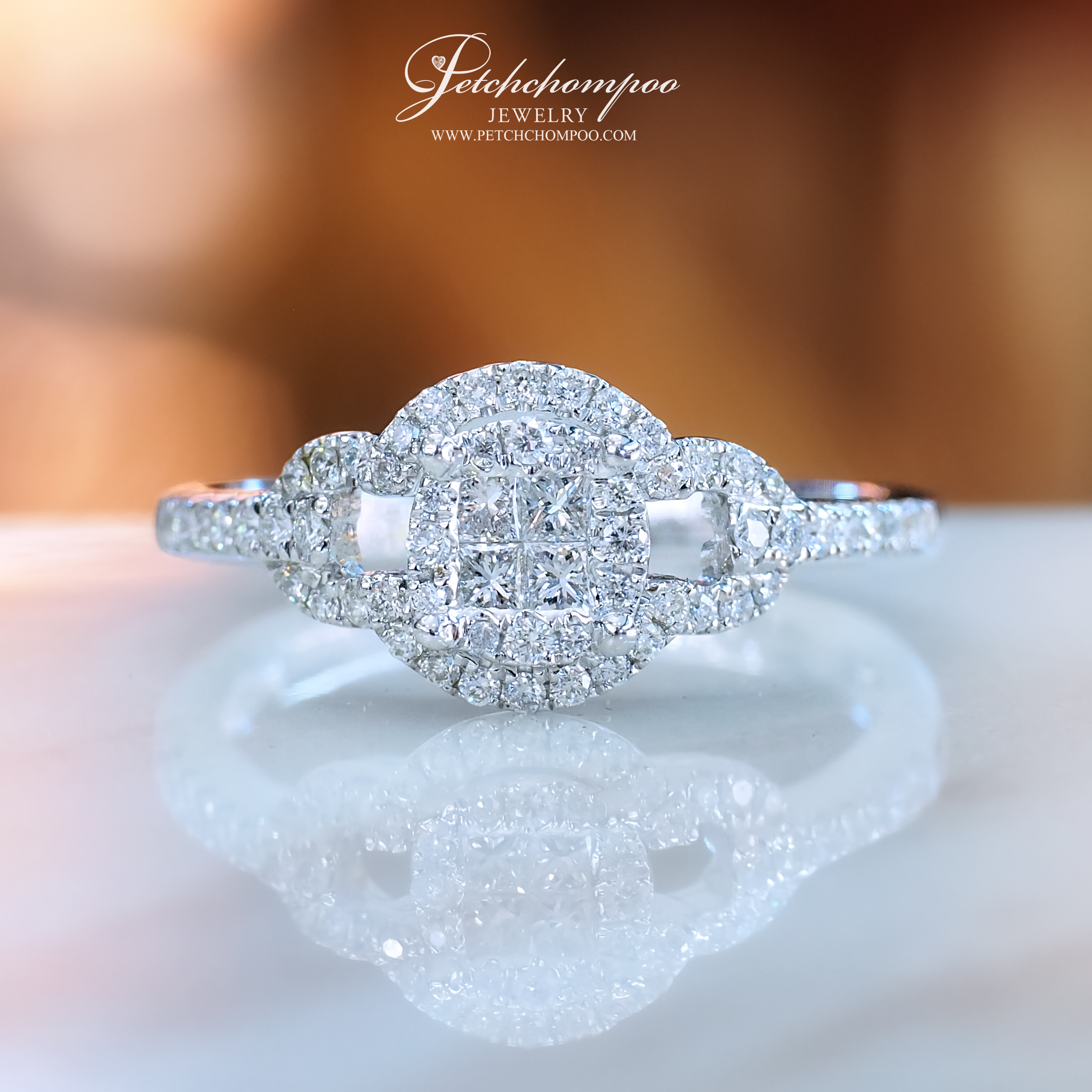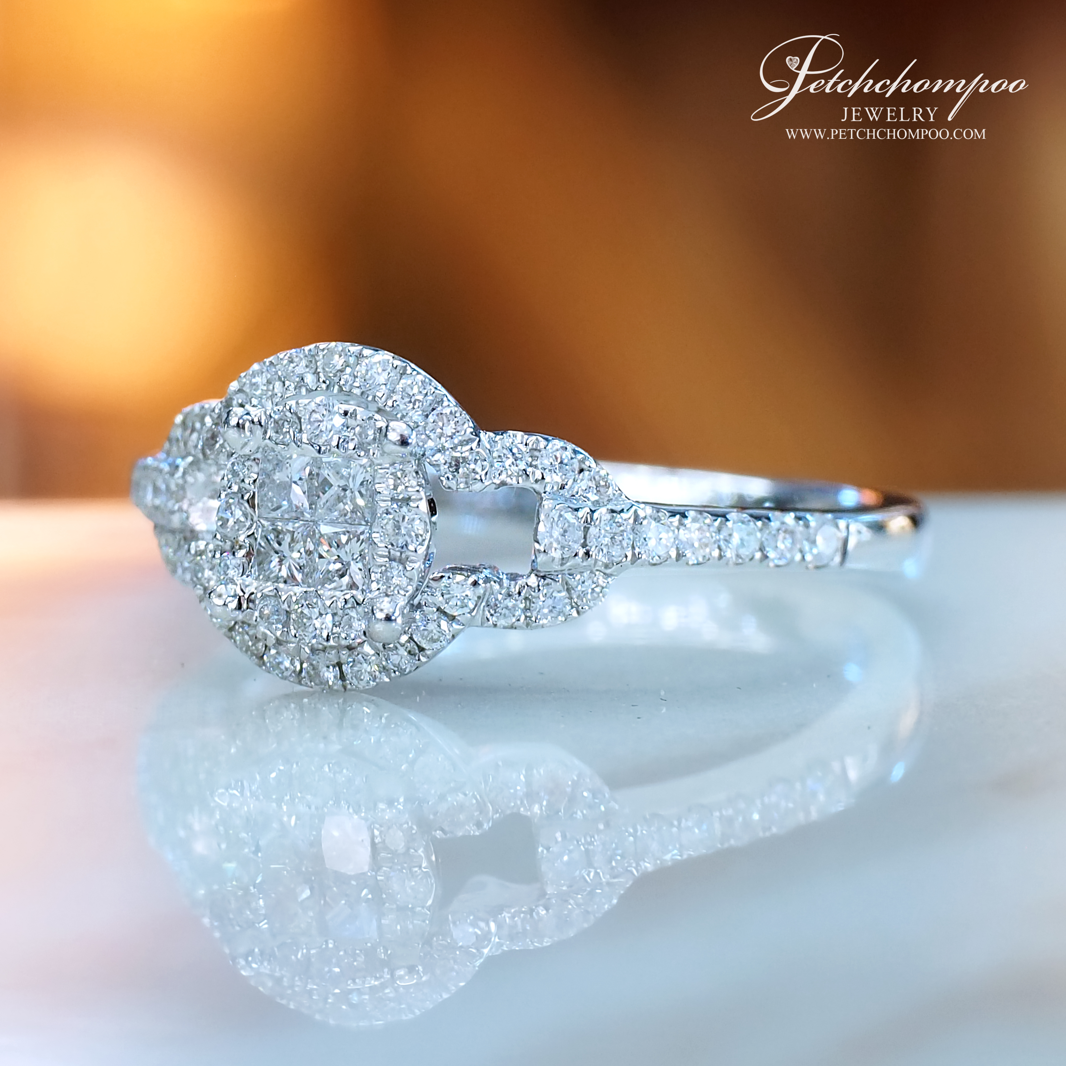 แหวนเพชรล้อมทรงสี่เหลี่ยมแบบ Double Halo สุดหรู ประดับเพชรกลม 60 เม็ด น้ำหนักรวม 0.44 กะรัต จัดเรียงอย่างประณีตบนตัวเรือนทองคำขาว 18K น้ำหนัก 3.33 กรัม ดีไซน์รูปทรงล้อมแบบอินฟินิตี้โอบล้อมเพชรเม็ดกลาง สื่อถึงความรักที่ไม่มีวันจาง พร้อมใบรับรองคุณภาพจาก GCI เพื่อยืนยันความแท้และมาตรฐานระดับสูง