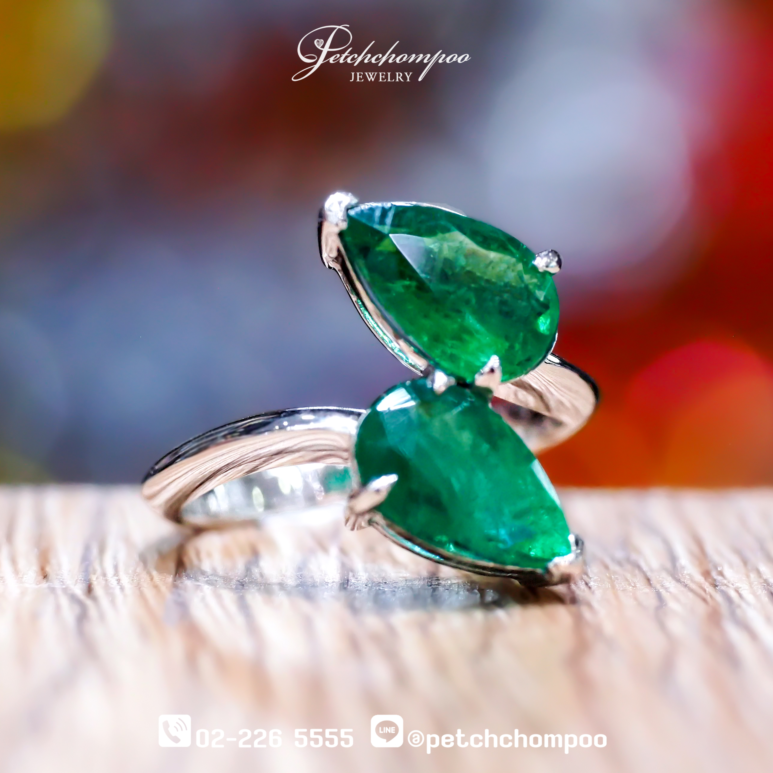แหวนมรกตแท้จากแหล่งแซมเบียสองเม็ด น้ำหนักรวม 3.23 กะรัต (1.58 กะรัต + 1.65 กะรัต) เจียระไนทรง Pear Shape เปล่งประกายเขียวสดเป็นธรรมชาติ ⇔ ดีไซน์ตัวเรือนทองคำขาว 18K น้ำหนัก 4.47 กรัม แบบเปิดปลายไขว้ สื่อถึงความสมดุลและความเป็นอิสระทางความคิด เหมาะสำหรับผู้หญิงที่มีสไตล์เฉพาะตัว หลงใหลในความเรียบหรูที่ไม่ธรรมดา → แหวนวงนี้คือชิ้นงานที่ทั้งอ่อนหวานและเฉียบคมในวงเดียว™