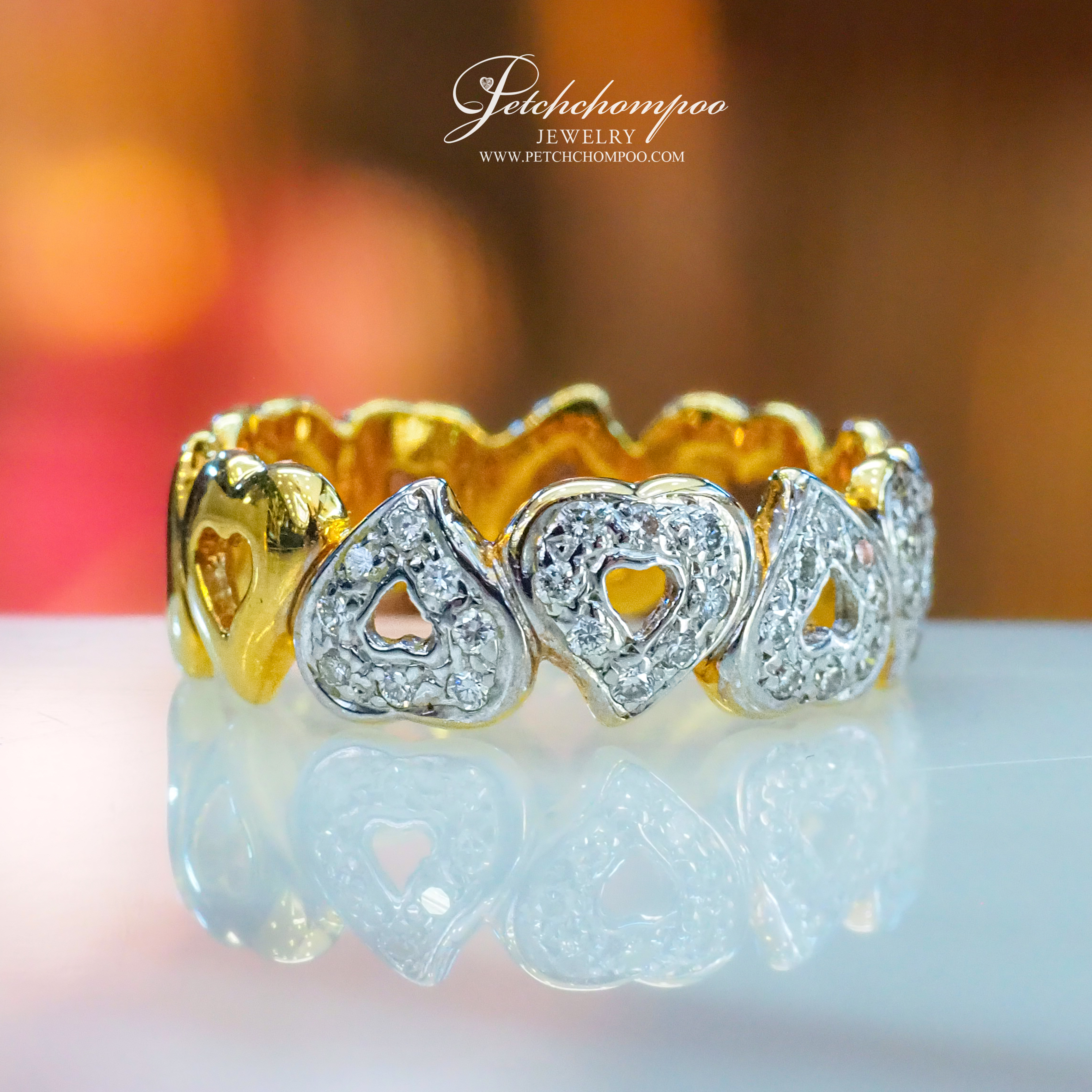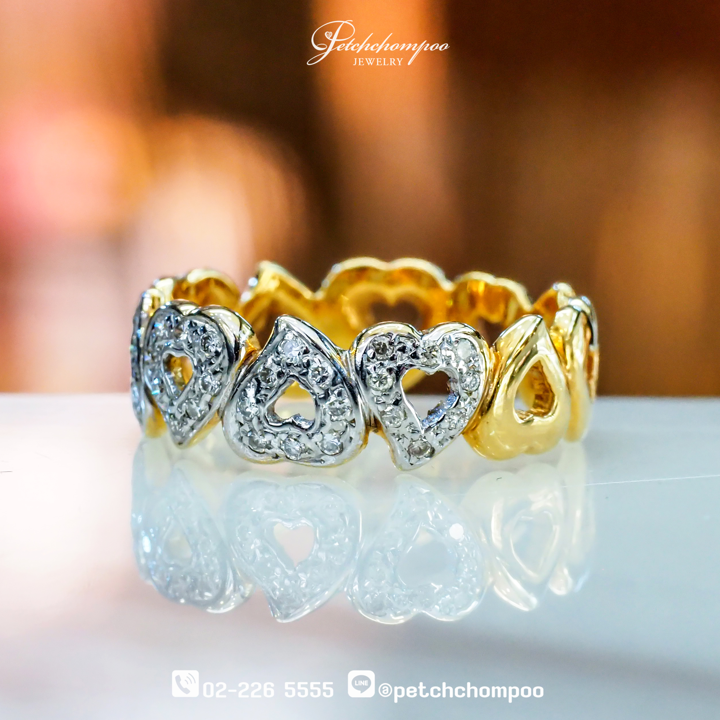 แหวนทองคำแท้ 18K ดีไซน์หวานจับใจด้วยลวดลายหัวใจเรียงต่อกันรอบวง ประดับเพชรแท้ 32 เม็ด น้ำหนักรวม 0.32 กะรัต บนตัวเรือนทองน้ำหนัก 4.80 กรัม ผสานความหวานละมุนของหัวใจกับประกายวิบวับของเพชรไว้อย่างลงตัว เหมาะสำหรับสวมใส่ทุกวัน หรือมอบให้เป็นของขวัญแทนใจในวันสำคัญ