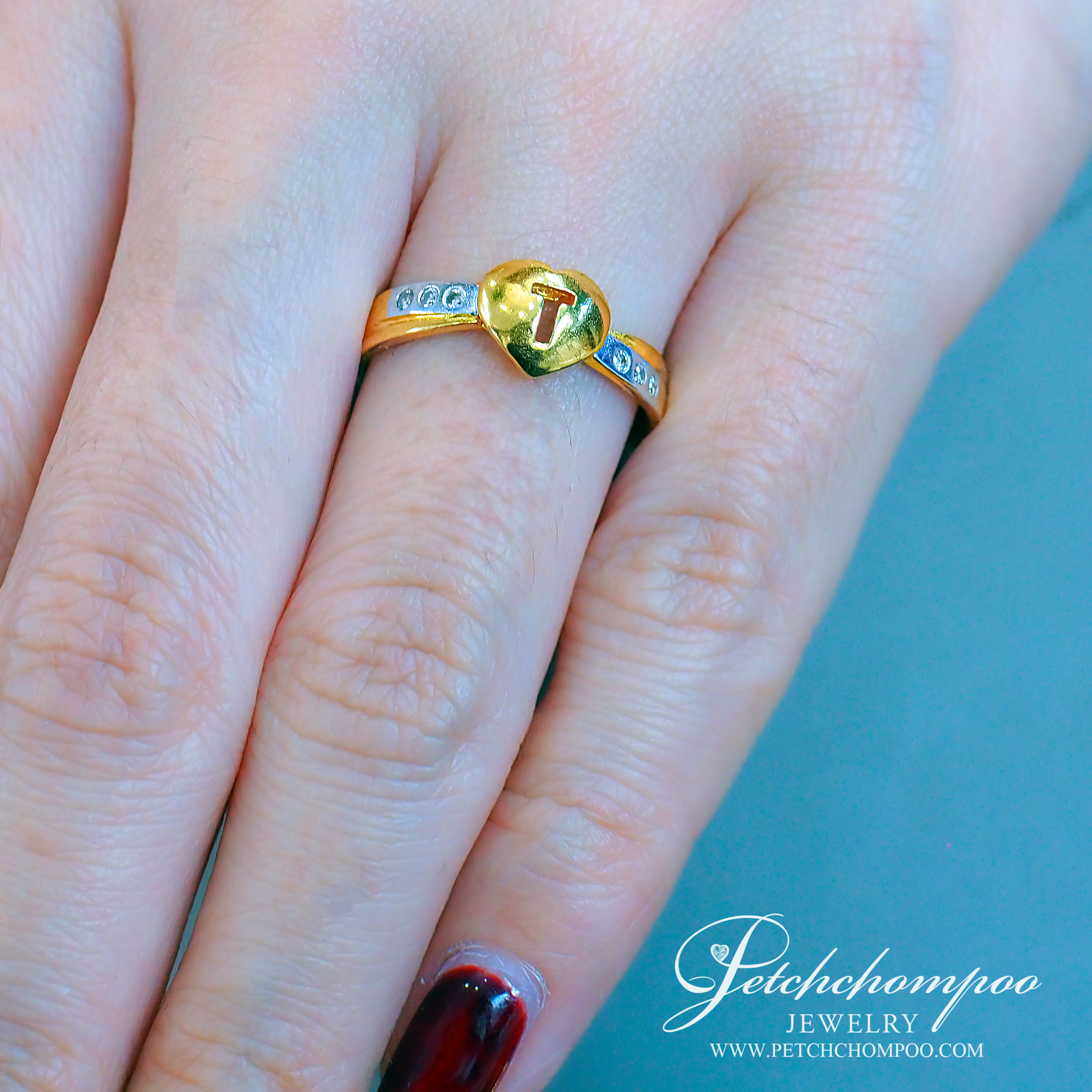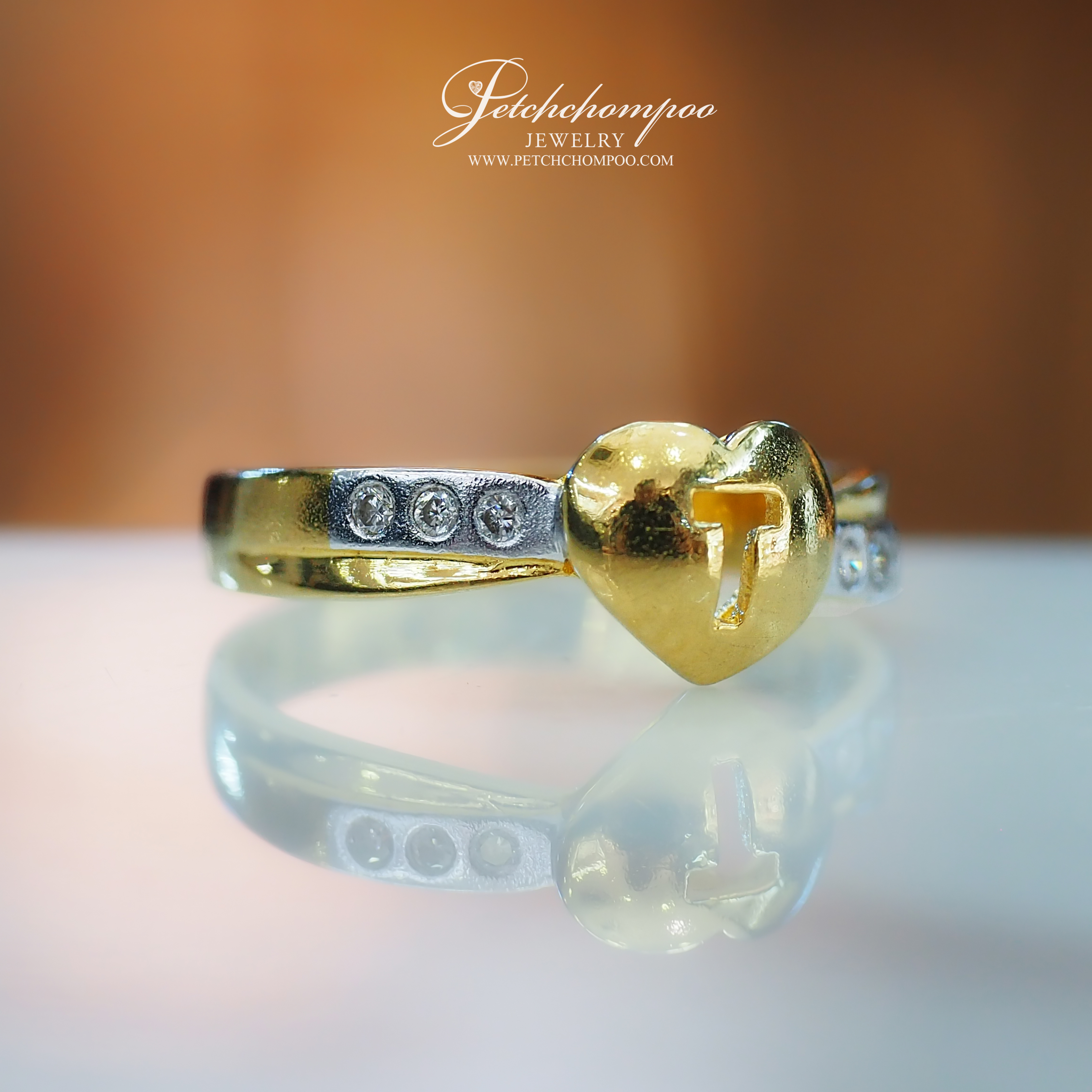 แหวน “My True Heart T”™ หัวใจทองแกะอักษร T ประดับเพชร