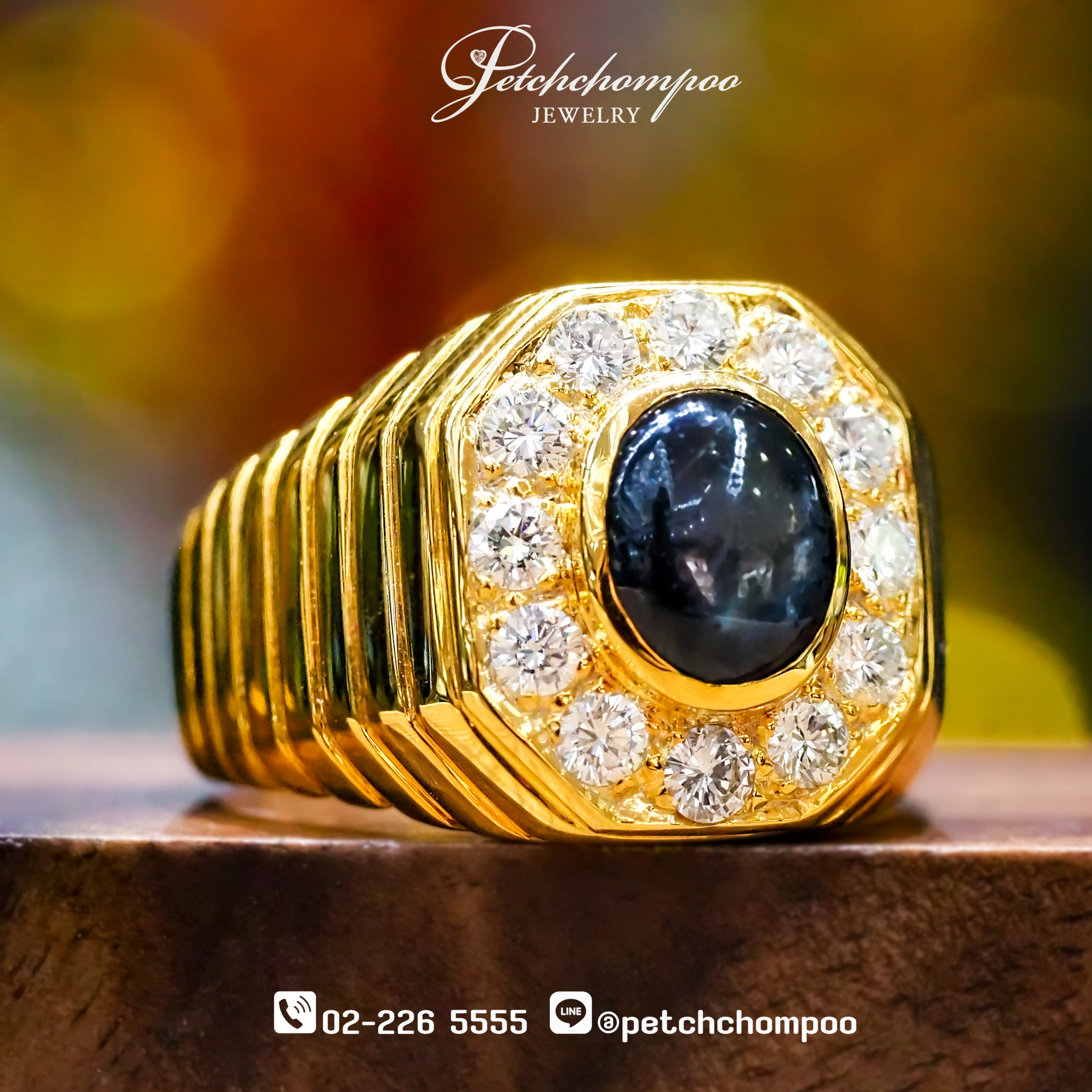 แหวน “Star Authority”™ แบล็คสตาร์แซฟไฟร์ ฝังเพชรดีไซน์หรูสำหรับสุภาพบุรุษ