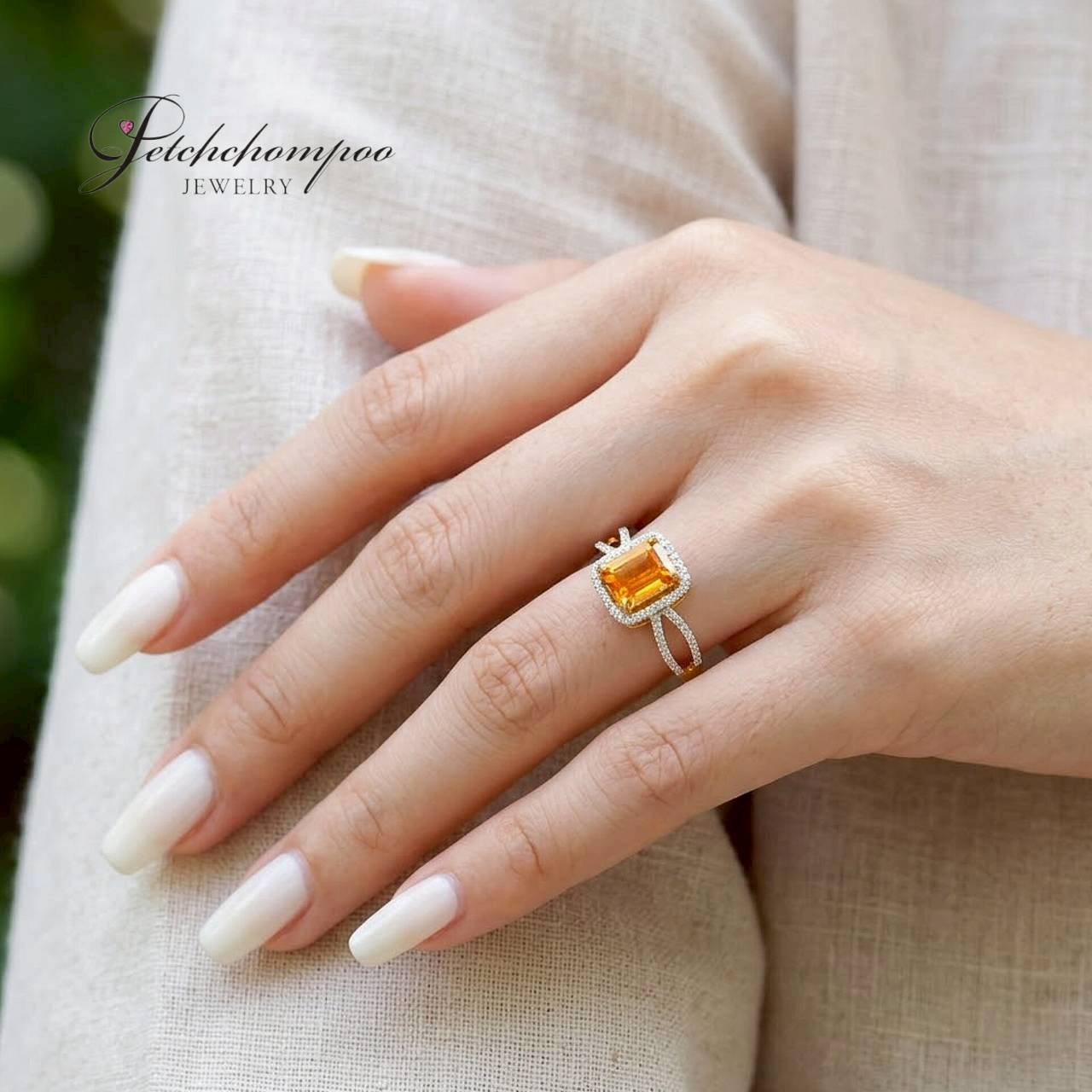 แหวนบุษราคัมซีลอน 3.17 กะรัต ดีไซน์ล้อมเพชร สายแหวนไขว้™