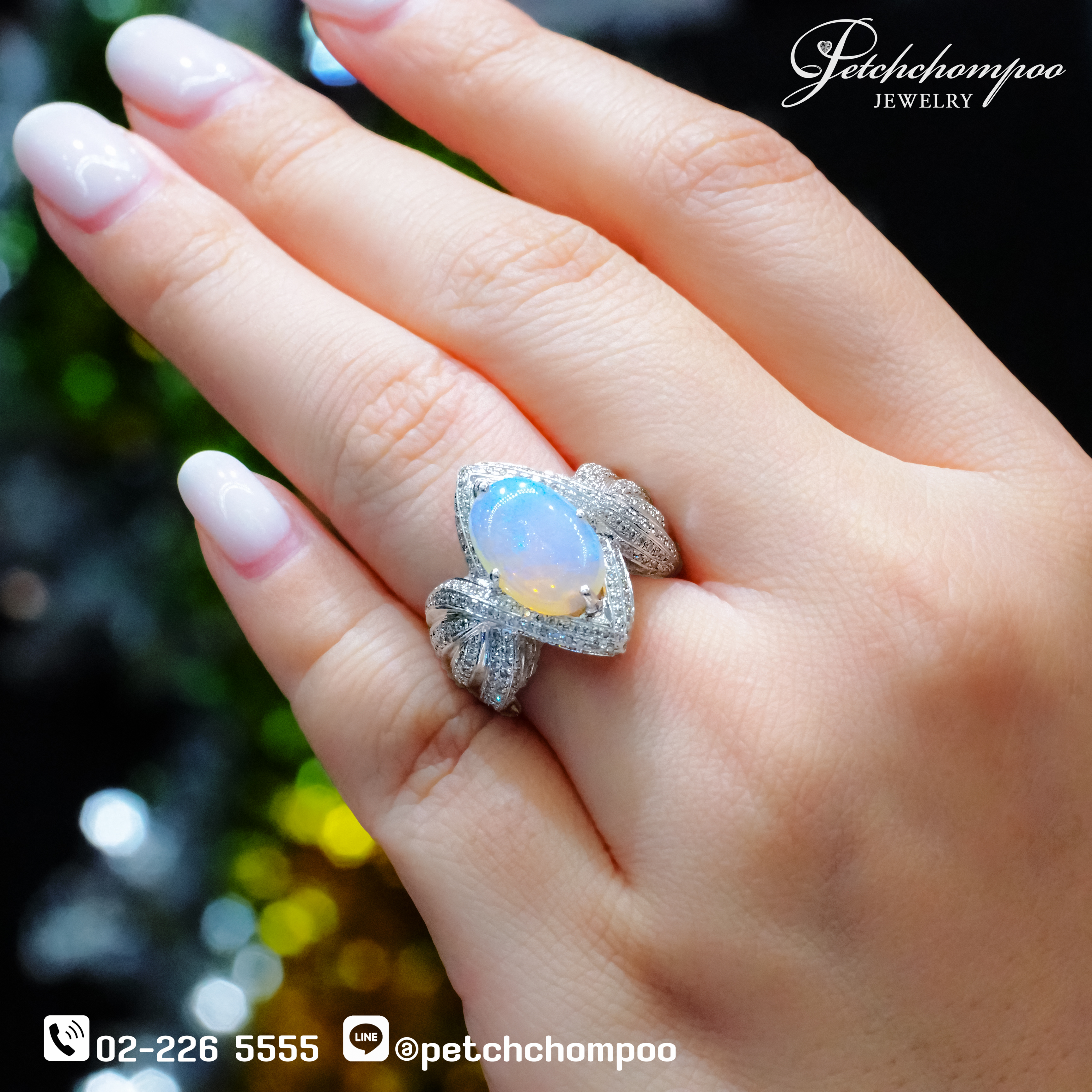 Celestial Opal™ แหวนโอปอลสีขาว 2.75 กะรัต ประดับเพชร | IGL