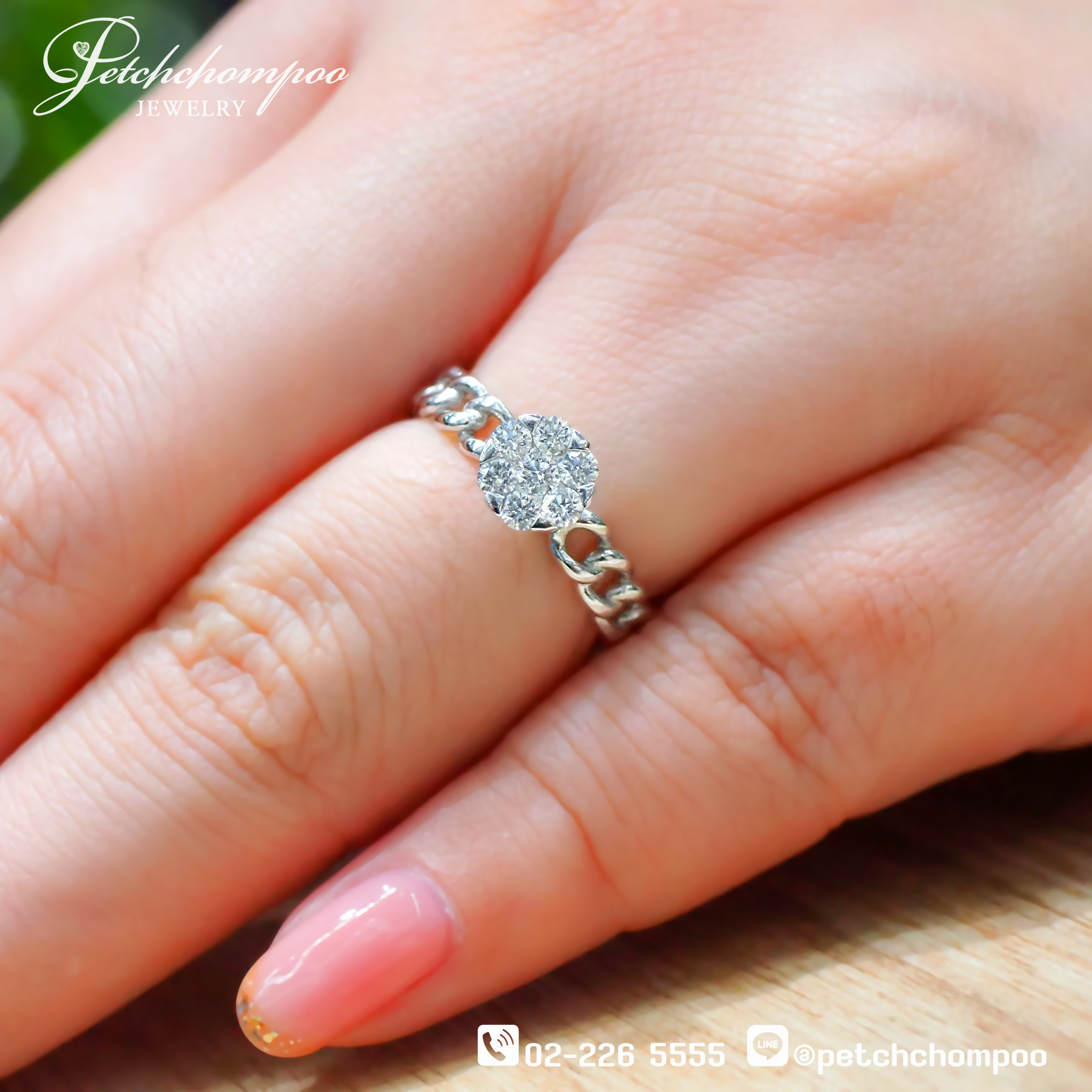 แหวนเพชรที่รังสรรค์ขึ้นในรูปทรง “กลีบดอกไม้บาน” อันเปล่งประกาย เพชรเจียระไนเหลี่ยมกลมคุณภาพสูง 7 เม็ด (รวม 0.38 กะรัต) ถูกจัดวางอย่างพิถีพิถันให้เป็นรูปดอกไม้สมบูรณ์แบบ → เพิ่มเสน่ห์ให้ทุกการเคลื่อนไหวด้วยประกายเพชรที่จับแสงได้ทุกมุม