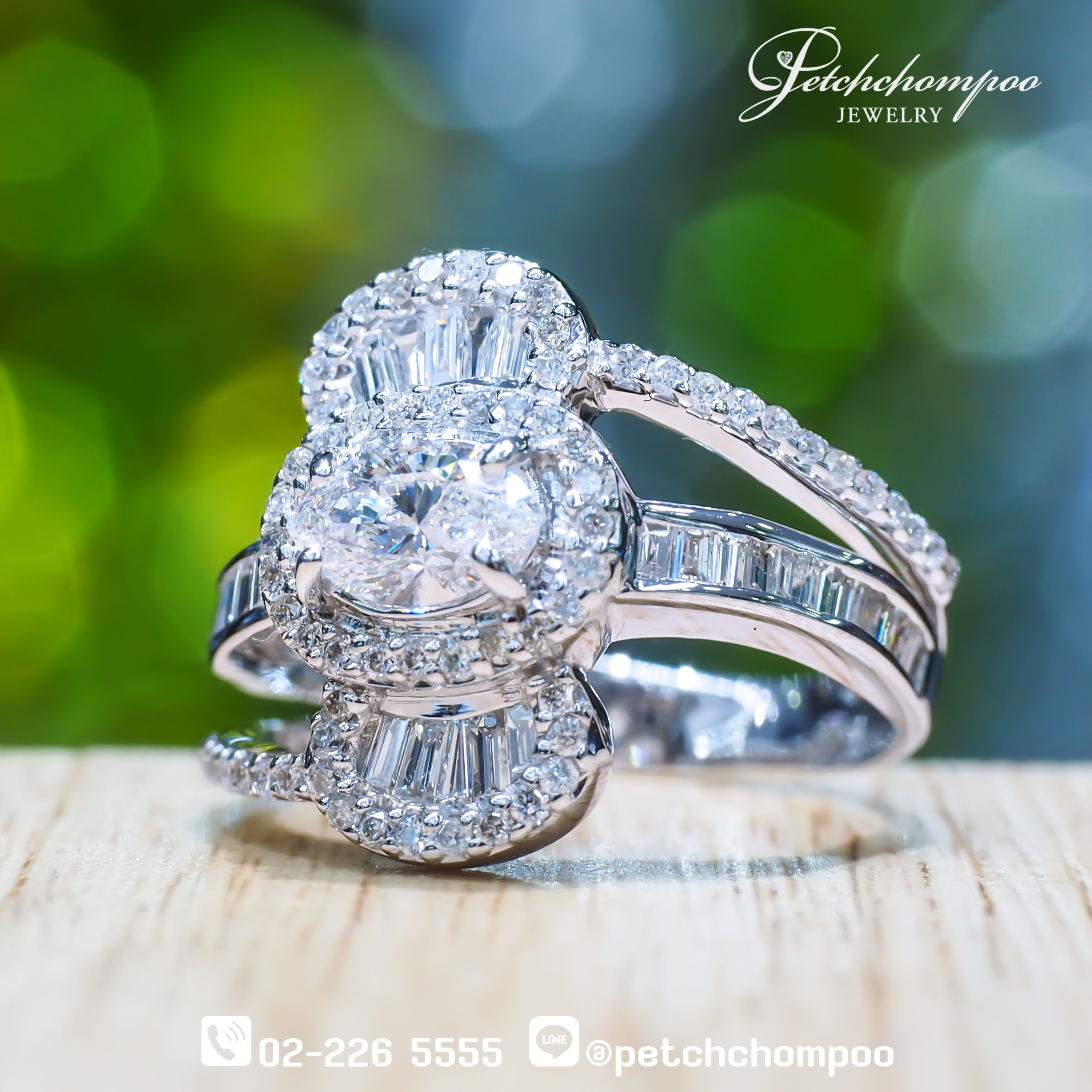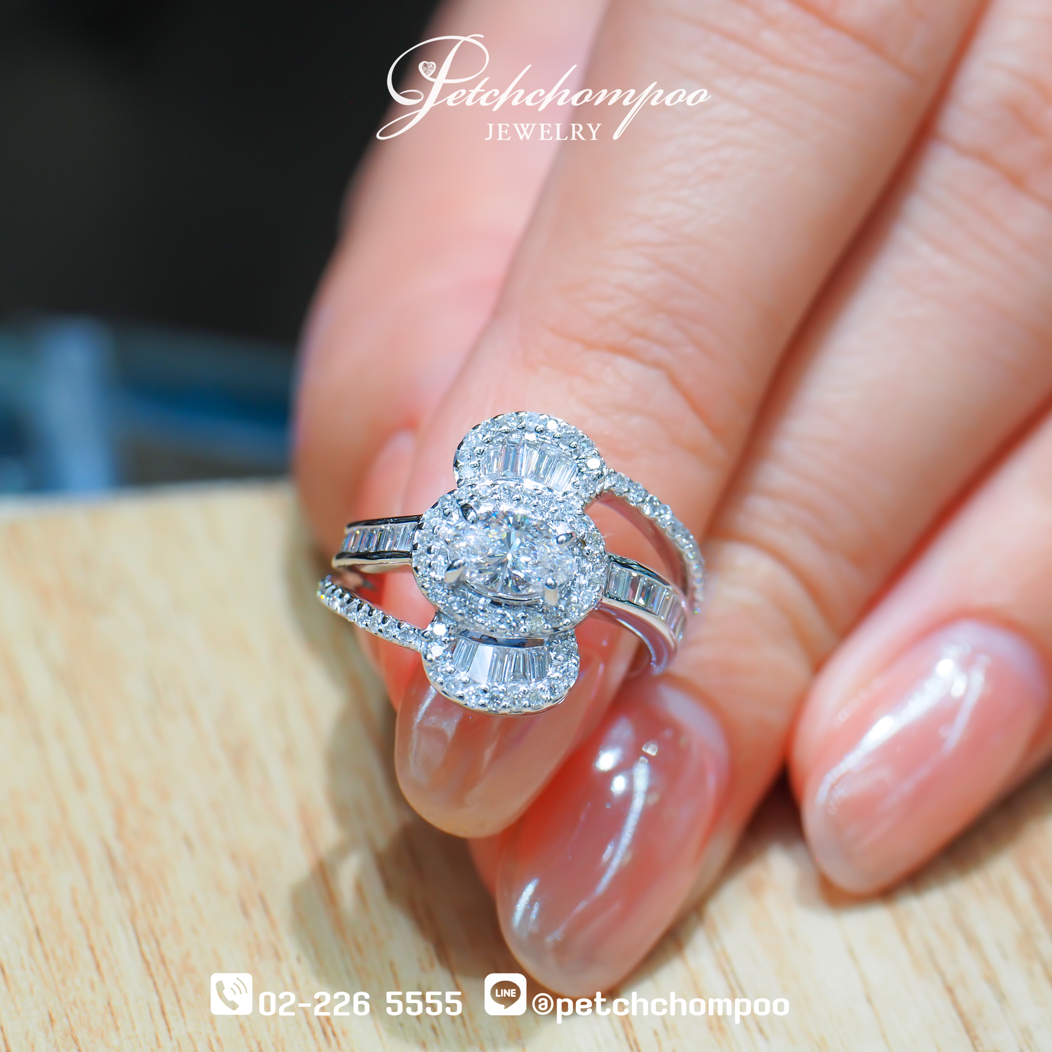 แหวน Radiant Bloom™ โดดเด่นด้วยเพชรเม็ดกลางเจียระไนกลม น้ำหนัก 0.50 กะรัต รายล้อมด้วยเพชรกลมและเพชรบาแก็ตจำนวนรวม 104 เม็ด น้ำหนักรวม 1.51 กะรัต ประดับบนตัวเรือนทองคำขาว 18K น้ำหนัก 5.94 กรัม ดีไซน์รูปดอกไม้สองชั้น เปล่งประกายหรูหราและโรแมนติก สื่อถึงความงดงามที่เบ่งบานตลอดกาล เหมาะสำหรับผู้หญิงที่ต้องการความโดดเด่นมีระดับ