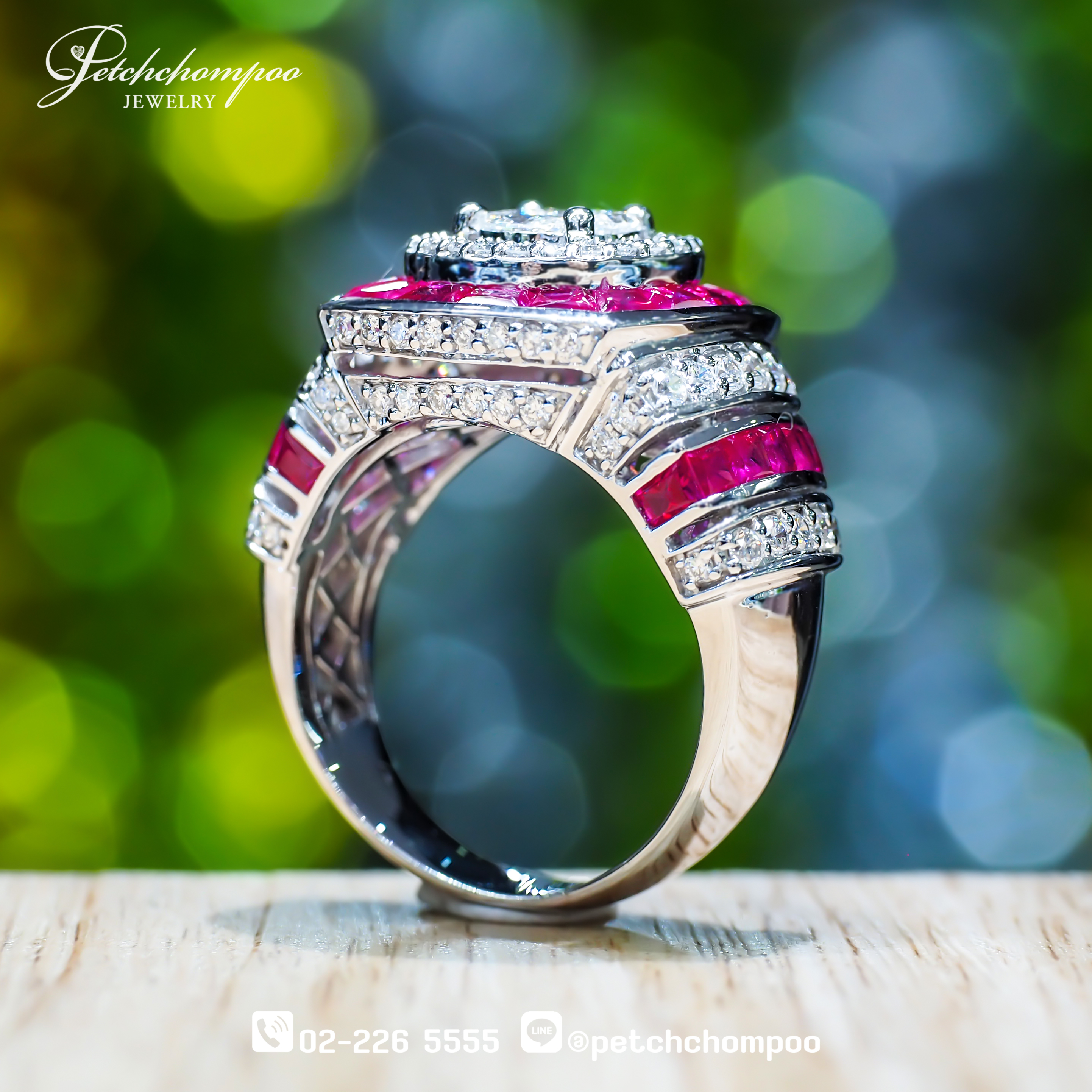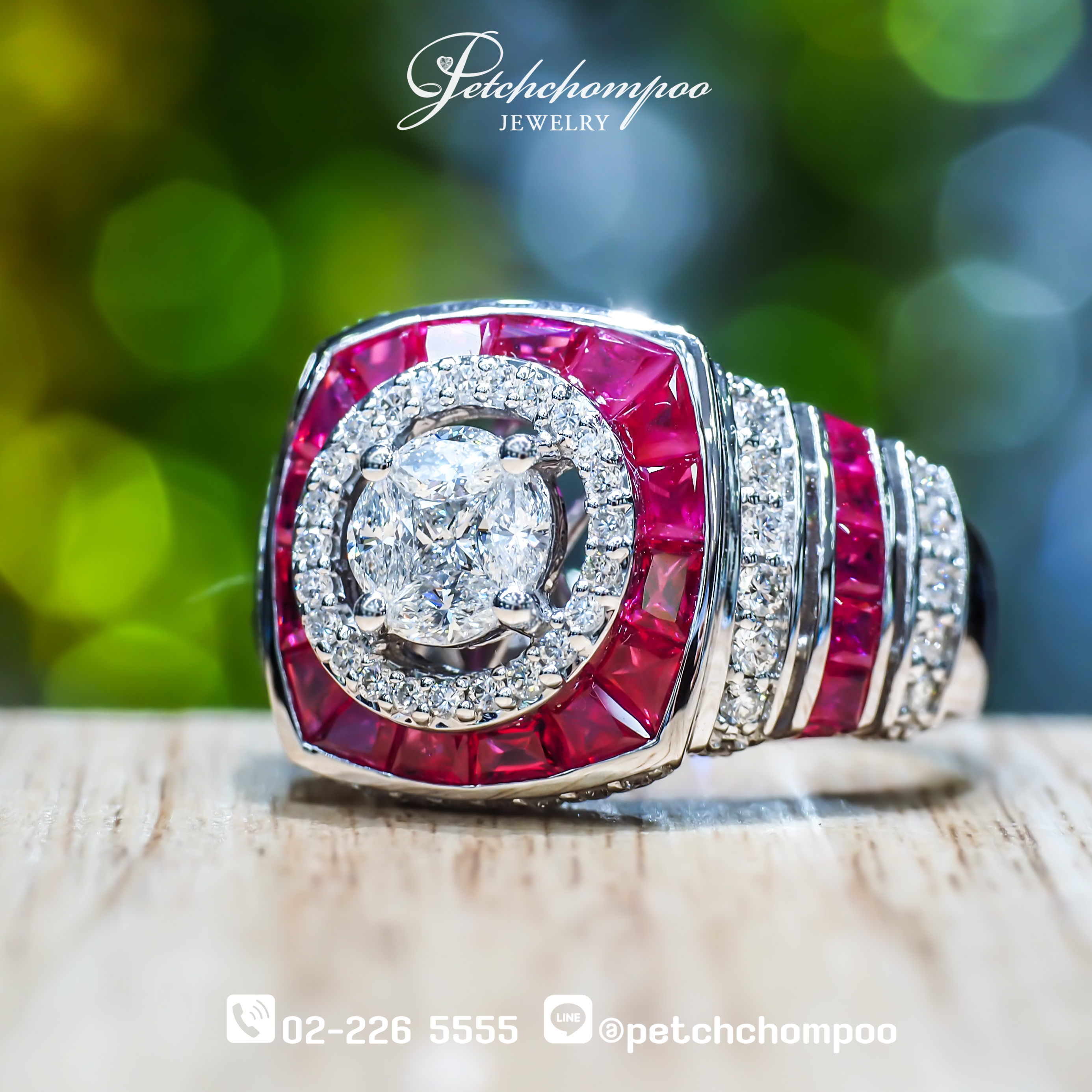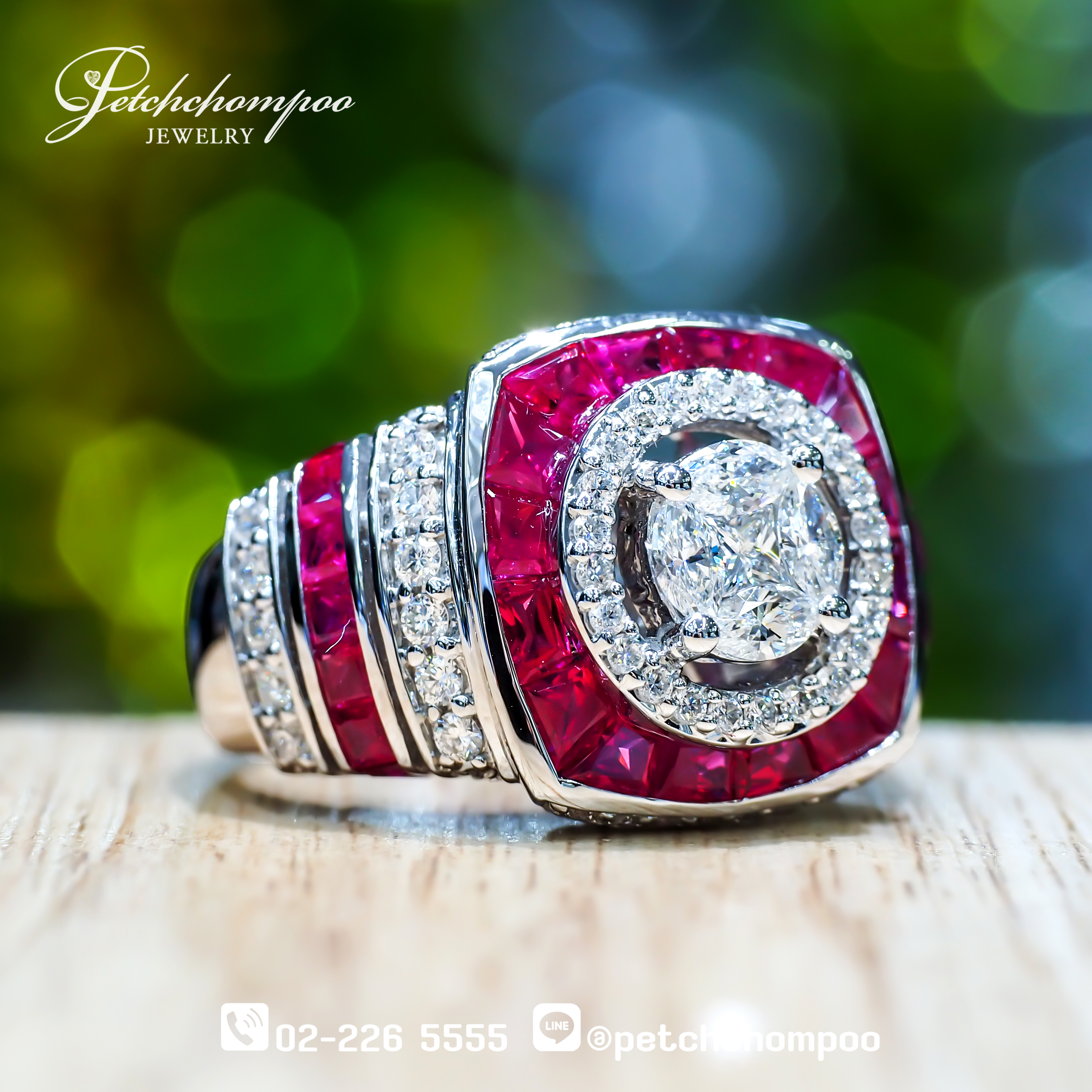 แหวนทับทิมพม่า Royal Crimson Glow™ ฝังเพชร