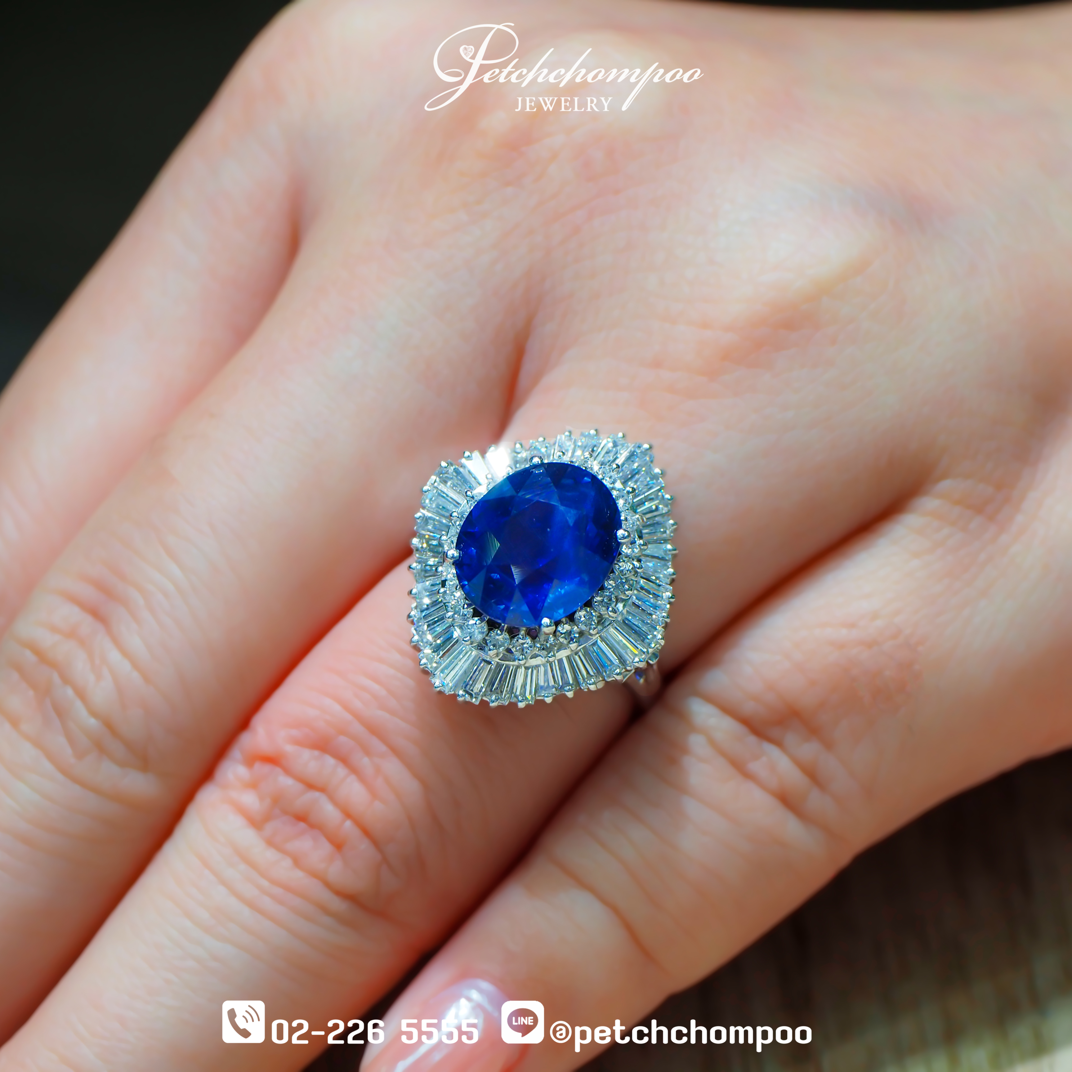 แหวน Mystic Twilight™ โดดเด่นด้วยไพลินมาดากัสการ์น้ำหนัก 6.13 กะรัต สีฟ้าเข้มสวยสง่า พร้อมคุณสมบัติพิเศษ Color Change ที่เปลี่ยนสีจากน้ำเงินเป็นม่วงภายใต้แสงที่แตกต่าง สะกดทุกสายตาด้วยประกายล้ำลึก โอบล้อมด้วยเพชรบาแก็ตและเพชรกลม 58 เม็ด น้ำหนักรวม 1.72 กะรัต ดีไซน์รัศมีรอบตัวเรือนทองคำขาว 18K หนัก 12.45 กรัม เสริมพลังออร่าหรูหราเหนือกาลเวลา พร้อมใบเซอร์ GFCO รับรองคุณภาพและความแท้จริง