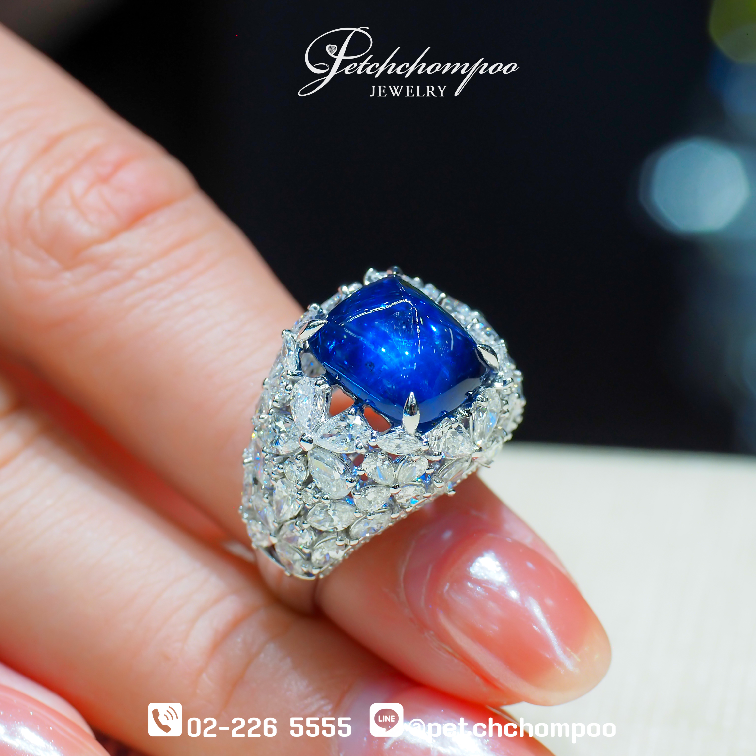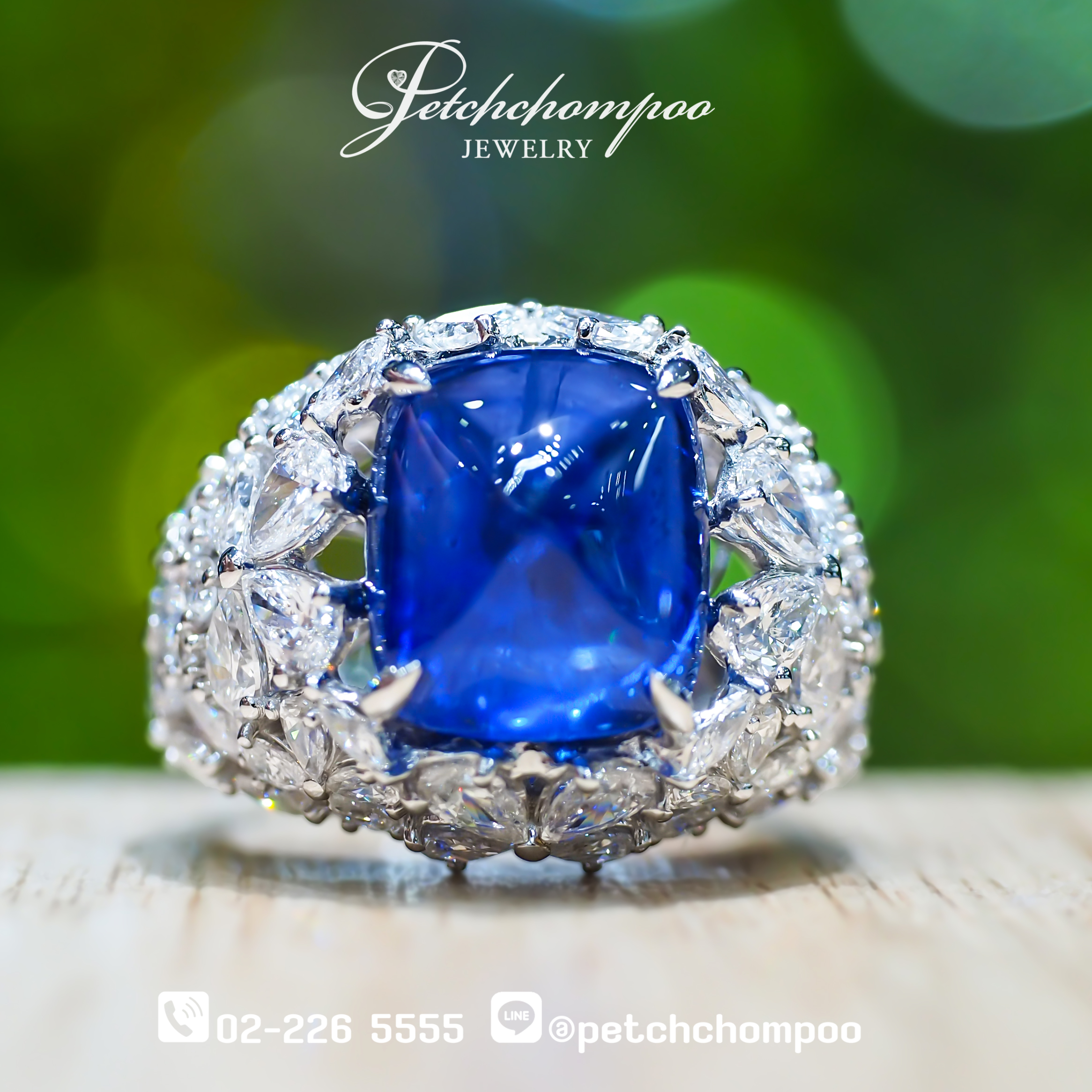 แหวน Royal Symphony™ คือบทกวีแห่งความสง่างามที่ผสานความงามเหนือกาลเวลาไว้ในหนึ่งเดียว ด้วย ไพลินศรีลังกา (Royal Blue Sapphire) สีเข้มจัดระดับ Royal Blue 7.48 กะรัต (1 เม็ด) เจียระไนเหลี่ยมพีระมิด (Cabochon Dome) อันทรงพลัง โอบล้อมด้วย เพชรมาคีร์ 0.91 กะรัต (42 เม็ด) และ เพชรกลม 0.34 กะรัต (52 เม็ด) รวมทั้งสิ้น 1.25 กะรัต (94 เม็ด)