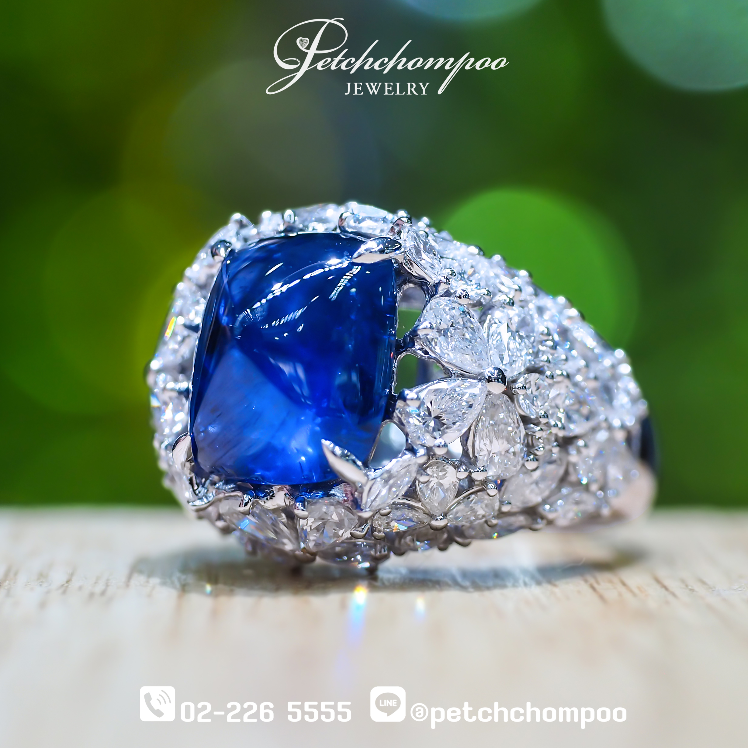 แหวนไพลินศรีลังกา Royal Symphony™ 7.48 กะรัต ล้อมเพชร | GFCO