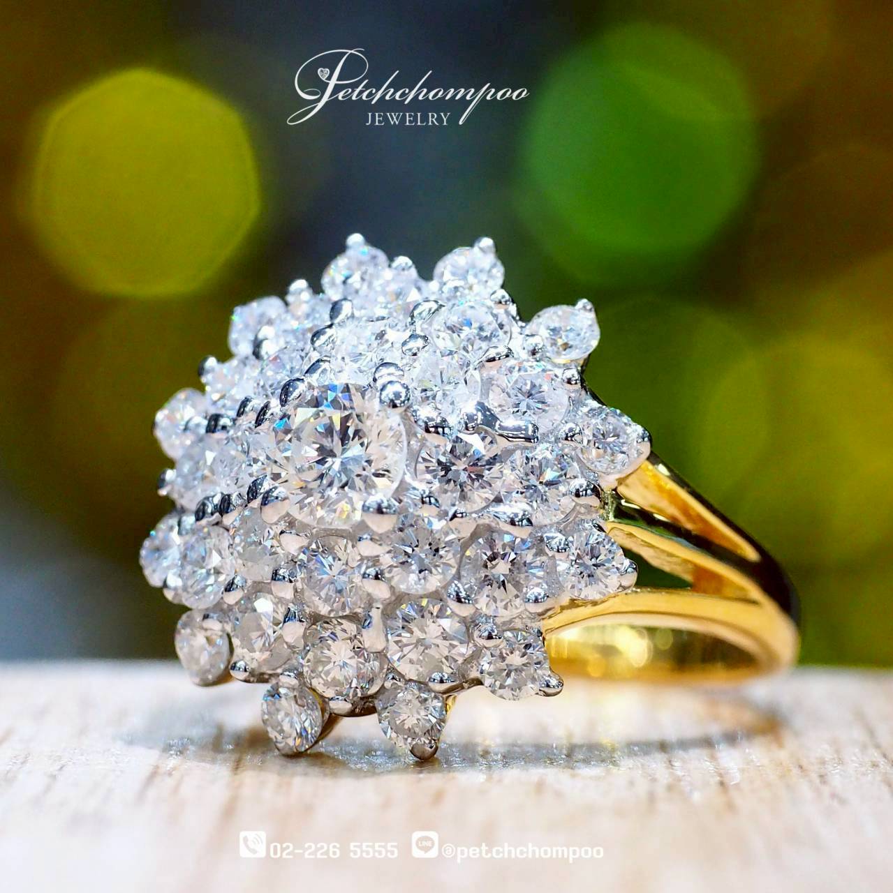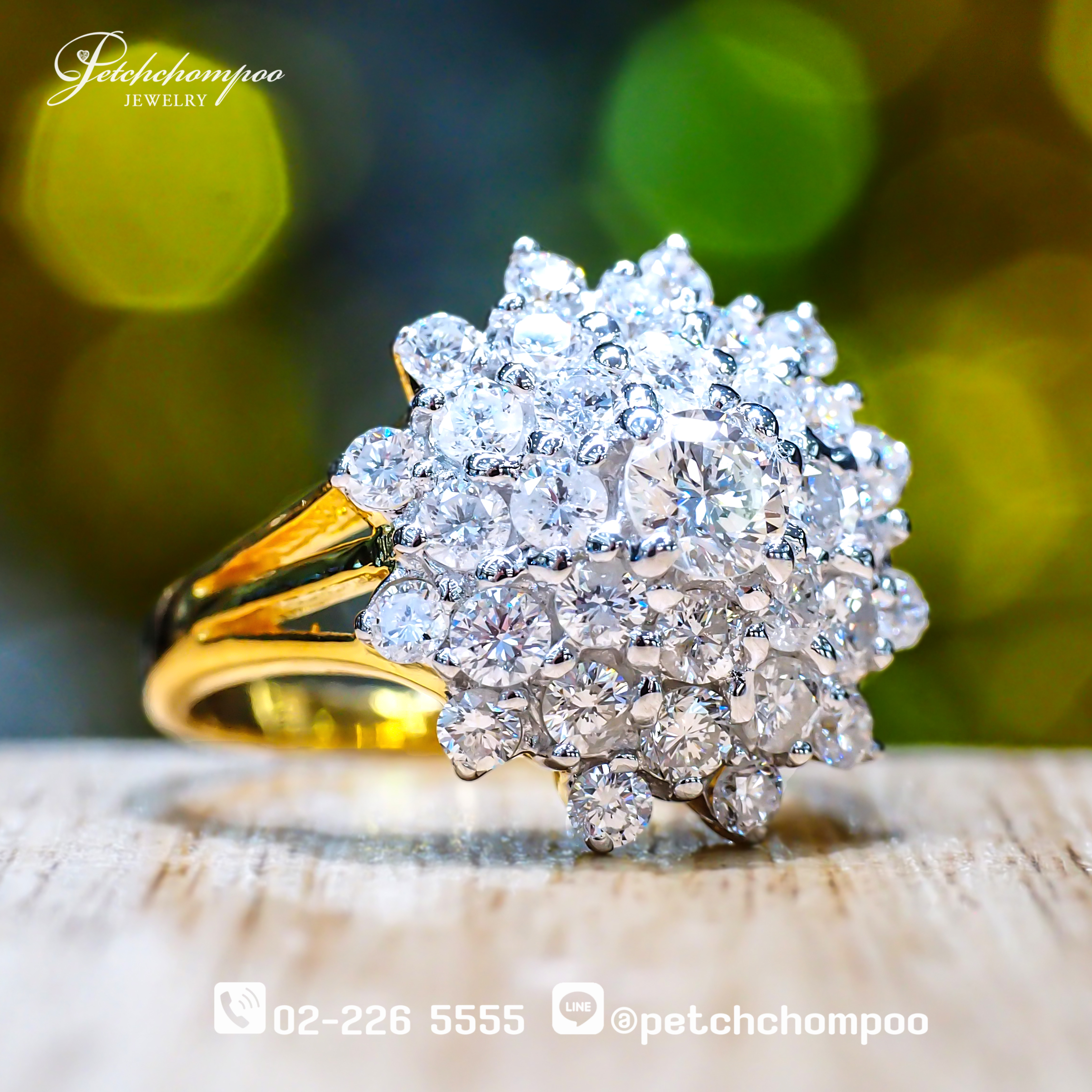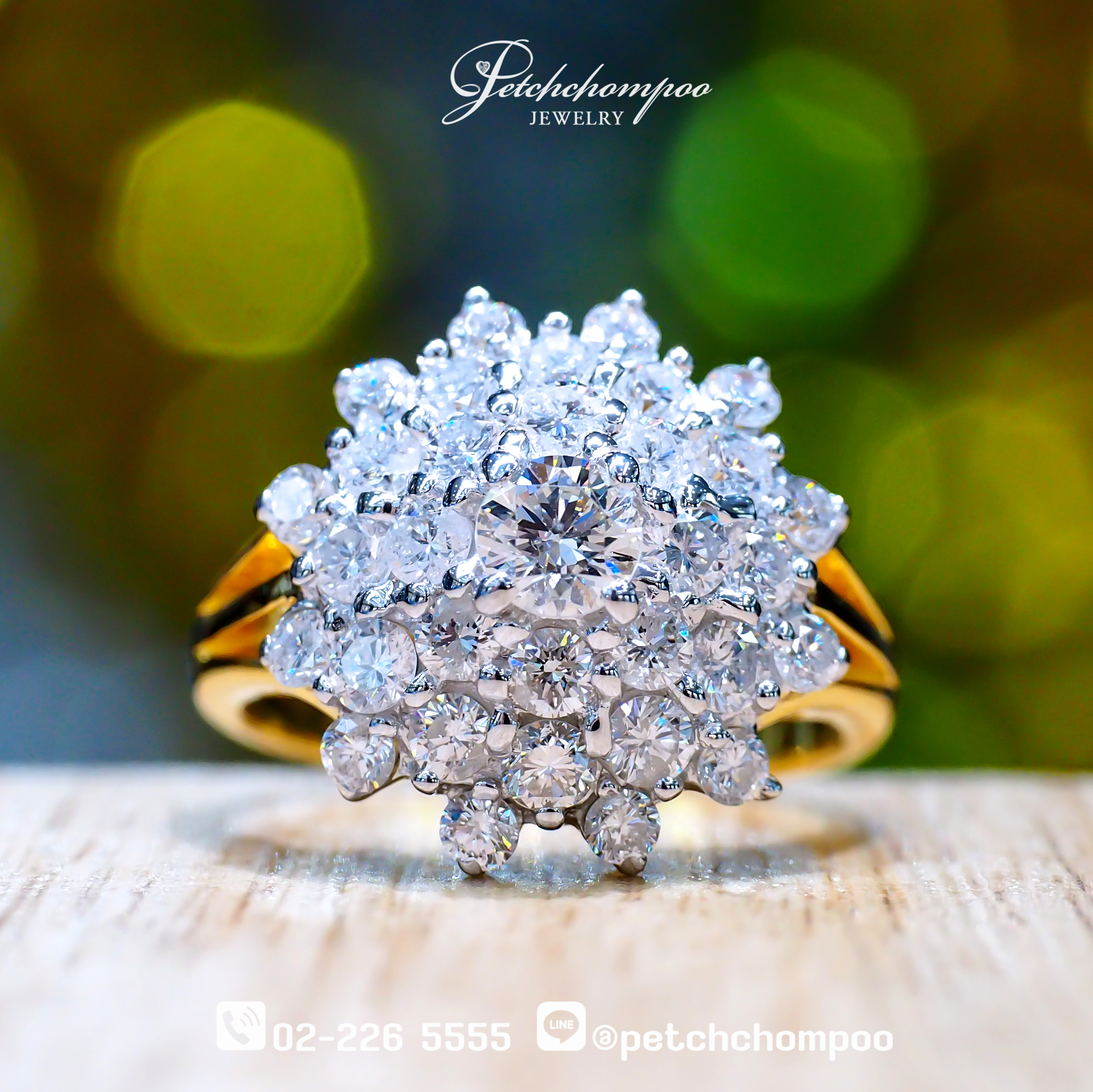 แหวนเพชร Blossom Radiance™ ดีไซน์หรูหราแบบคลัสเตอร์ดอกไม้ สะท้อนความงดงามอ่อนหวานและสง่างามในเวลาเดียวกัน ประดับด้วยเพชรแท้เม็ดหลัก 0.25 กะรัต (1 เม็ด) และเพชรประดับรอบรวม 1.73 กะรัต (34 เม็ด) รวมทั้งหมด 1.98 กะรัต บนตัวเรือนทองคำ 18K หนัก 5.94 กรัม การจัดเรียงเพชรแบบชั้นซ้อนสร้างมิติระยิบระยับทุกองศา เปรียบดั่งดอกไม้ผลิบานภายใต้แสงอาทิตย์ เหมาะสำหรับหญิงสาวที่ต้องการแหวนเพชรหรูหราสไตล์ Classic Statement ที่เปล่งประกายทุกครั้งที่สวมใส่