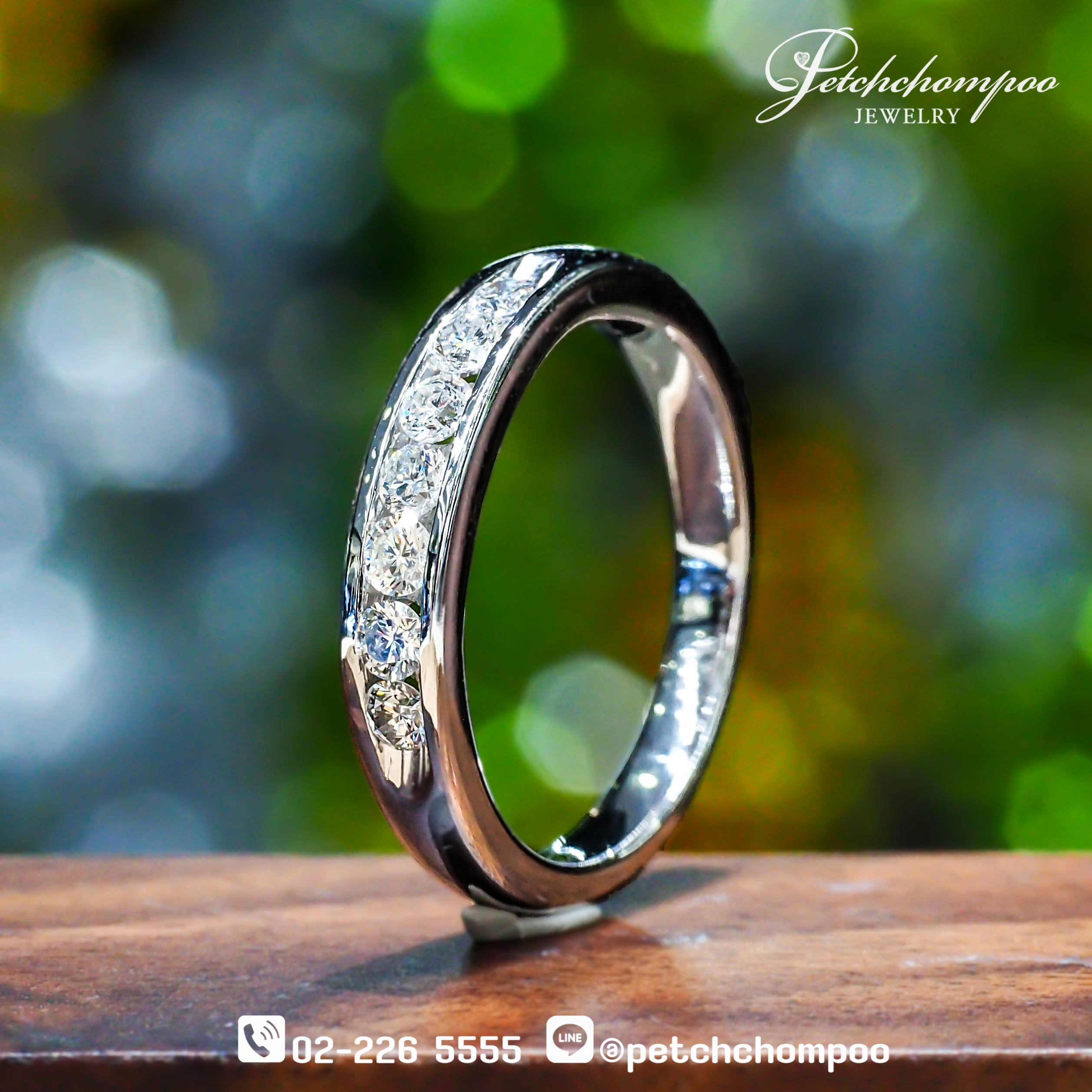 ดีไซน์วงเรียบเรียงเพชรต่อเนื่องสื่อถึงความคงมั่นและความรักนิรันดร์ เหมาะสำหรับเป็นแหวนคู่, แหวนแต่งงาน หรือแหวนใส่ประจำวันสำหรับผู้มีรสนิยมเรียบหรู