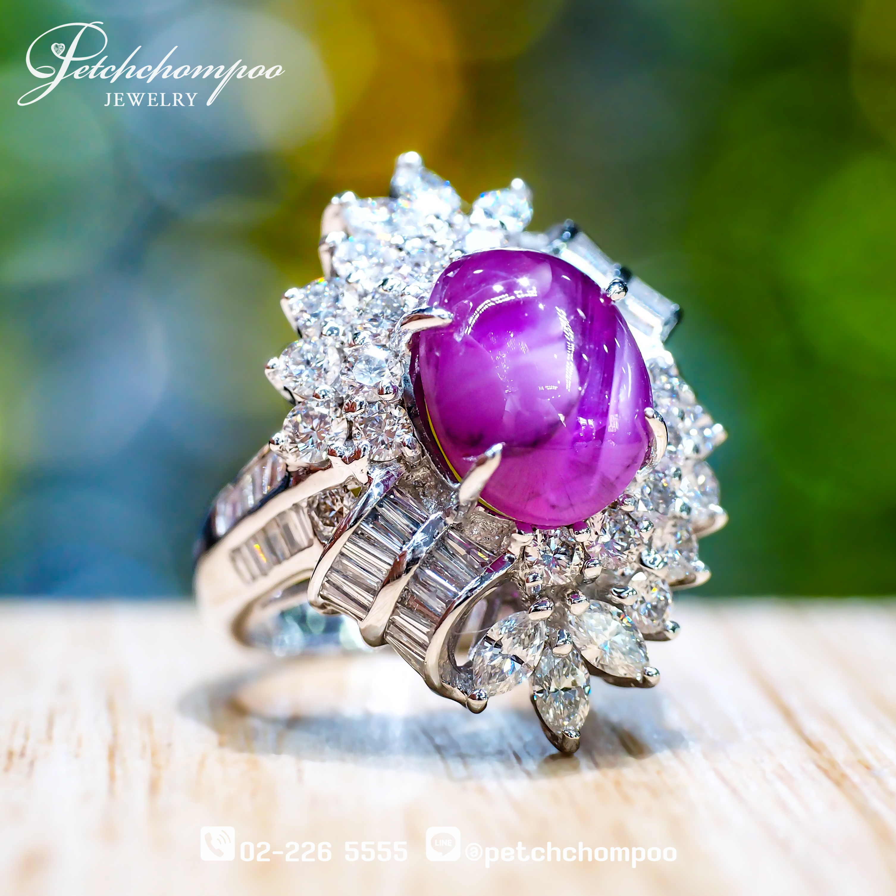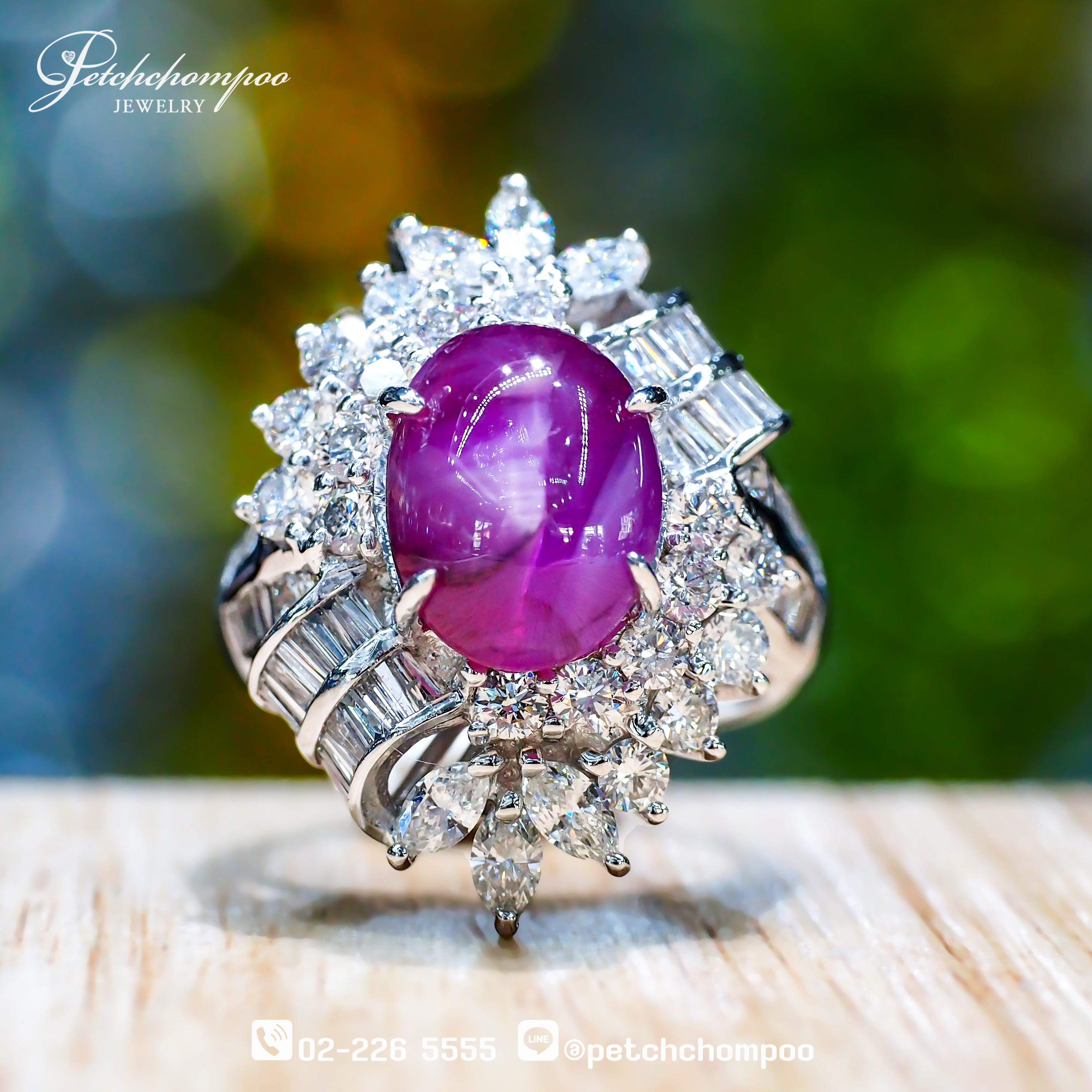แหวนทับทิม Star Ruby Myanmar Celestial Starlight 7.54 กะรัต ล้อมเพชร (เซอร์ Emil)