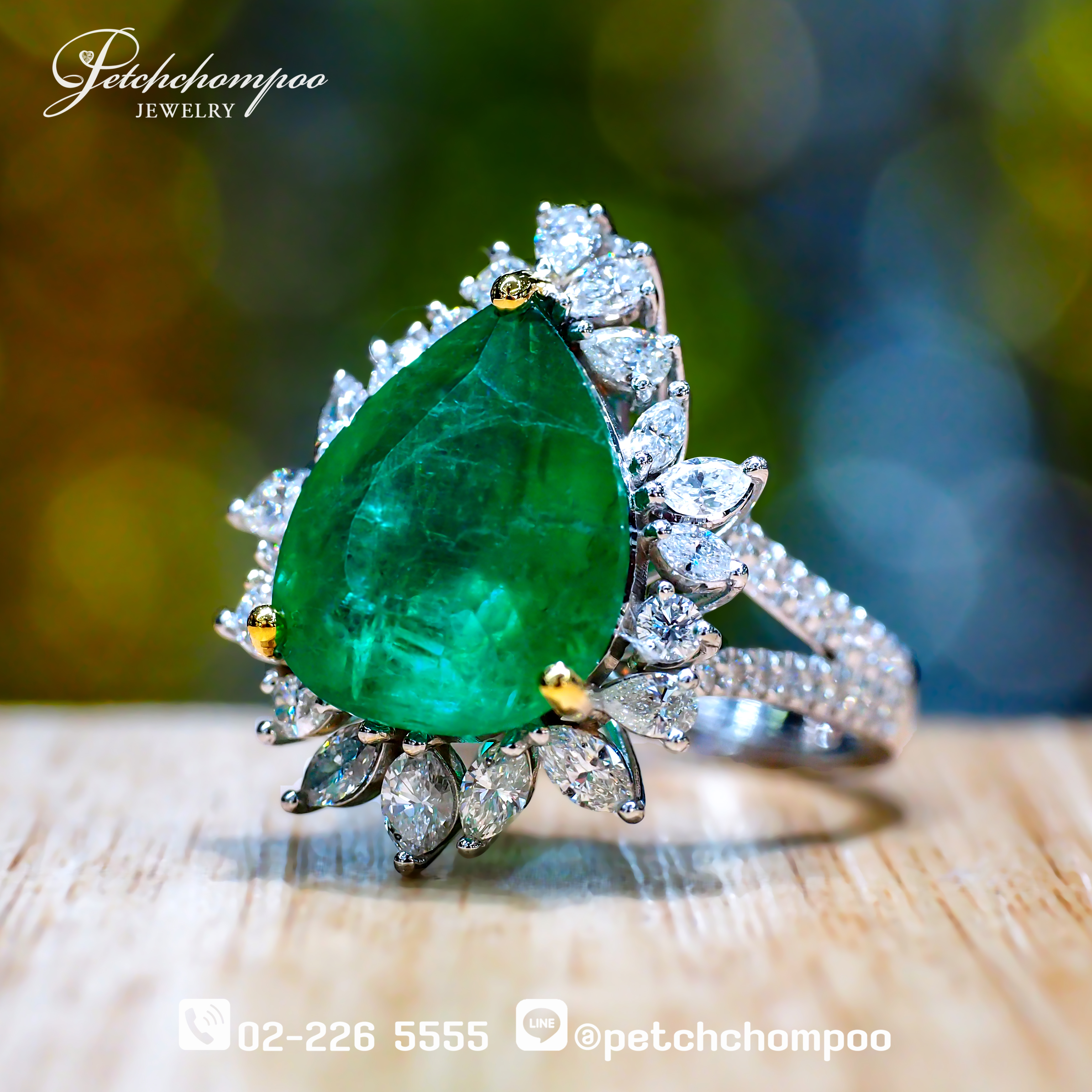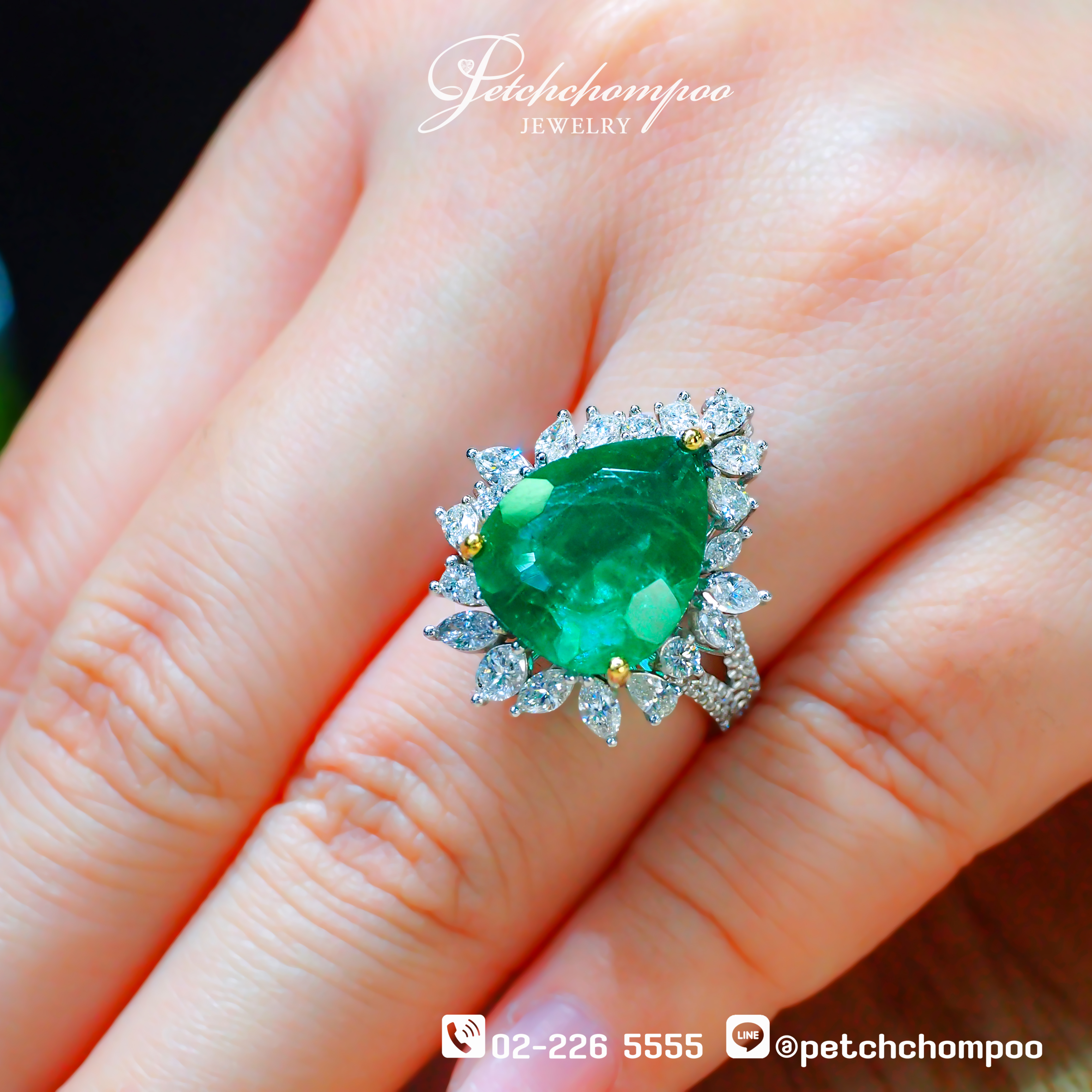 แหวน–จี้ 2in1 มรกตโคลอมเบีย Vivid Green Emerald Sovereign Bloom 8.11 กะรัต ล้อมเพชร | GFCO