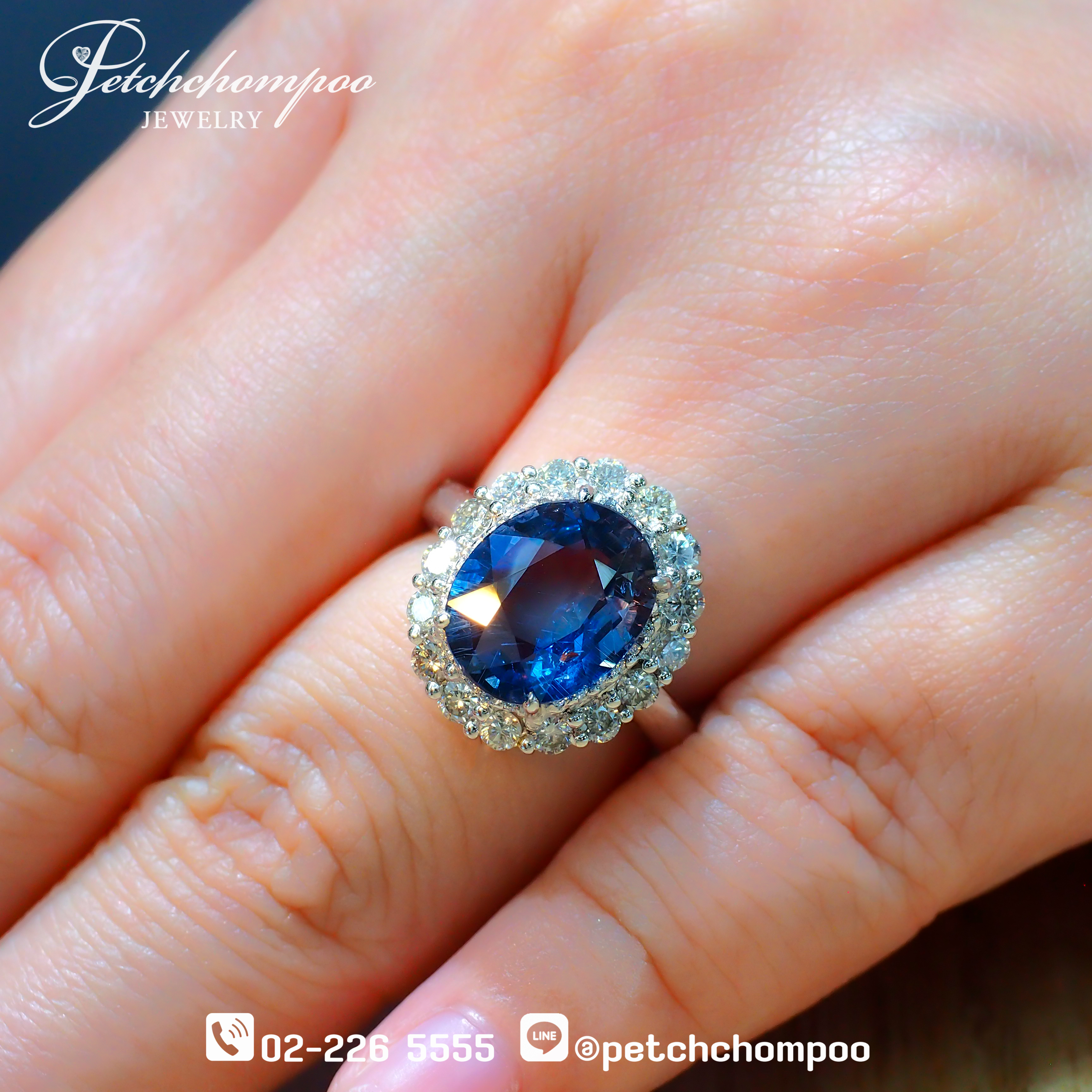 ✨โทน Violet–Purplish ใต้แสงในอาคาร ล้อมรอบด้วยเพชรคัดสรรคุณภาพเยี่ยม 40 เม็ด รวม 1.00 กะรัต ดีไซน์ฮาโลแบบกลีบมงกุฎ เพิ่มความสว่างและประกายไฟให้กับไพลินเม็ดใหญ่ได้อย่างสมบูรณ์แบบ ตัวเรือนทองคำขาว 18K น้ำหนัก 7.58 กรัม ออกแบบอย่างประณีตเพื่อรองรับอัญมณีระดับใหญ่ ให้สมดุล ความแข็งแรง และความหรูหราที่สมบูรณ์ พร้อมใบรับรอง GFCO Certificate ยืนยันความแท้ทุกองค์ประกอบ