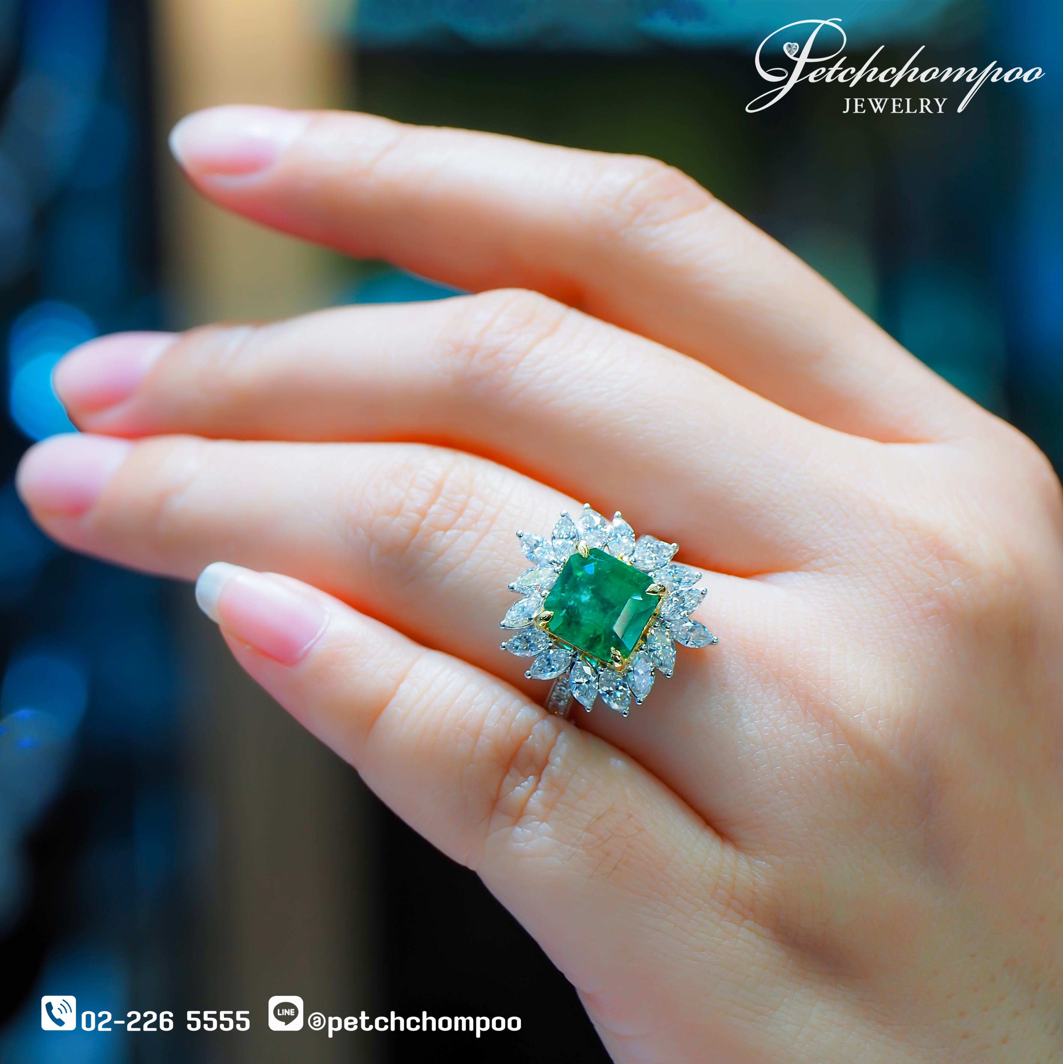แหวนมรกตโคลอมเบีย Vivid Green Imperial Vivid Emerald Halo 3.04 กะรัต | GRS