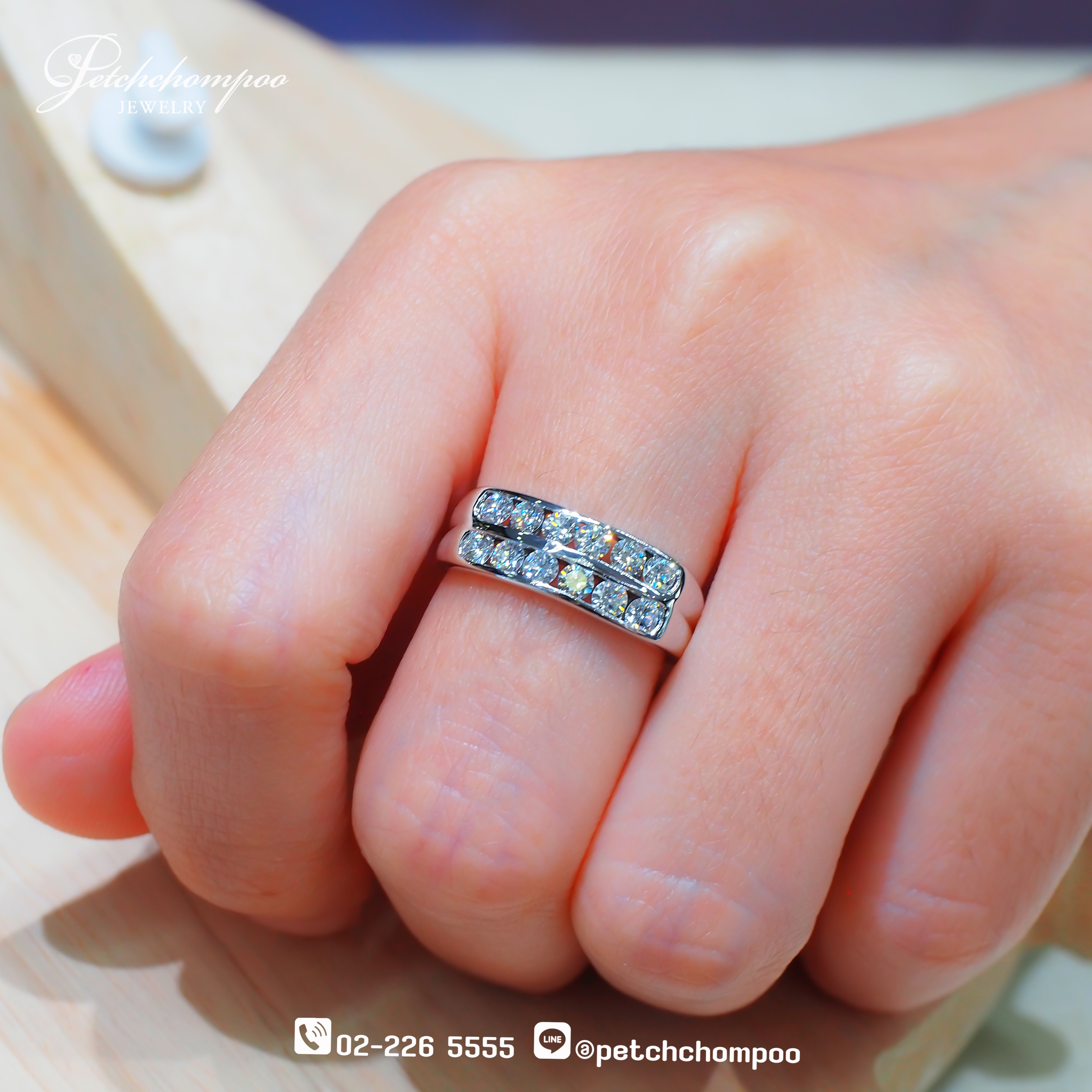 แหวนเพชรดีไซน์เรียบหรูที่โดดเด่นด้วยการเรียงเพชรสองแถวอย่างสมมาตร สะท้อนประกายแสงอย่างงดงามในทุกมุมมอง ดีไซน์แบบ Channel Setting ช่วยให้เพชรแต่ละเม็ดเรียงตัวอย่างประณีตและปลอดภัย พร้อมเพิ่มมิติของประกายเพชรให้ดูต่อเนื่องดั่งเส้นแสงที่ไม่มีที่สิ้นสุด ตัวเรือนทองคำขาว 18K ถูกขัดเงาอย่างประณีต ให้ผิวโลหะสะท้อนแสงอย่างหรูหรา เสริมให้ประกายของเพชรโดดเด่นยิ่งขึ้น ดีไซน์ที่เรียบโก้แต่ทรงพลังนี้เหมาะสำหรับผู้ที่ชื่นชอบเครื่องประดับที่ดูหรู สุขุม และสวมใส่ได้ในทุกโอกาส
