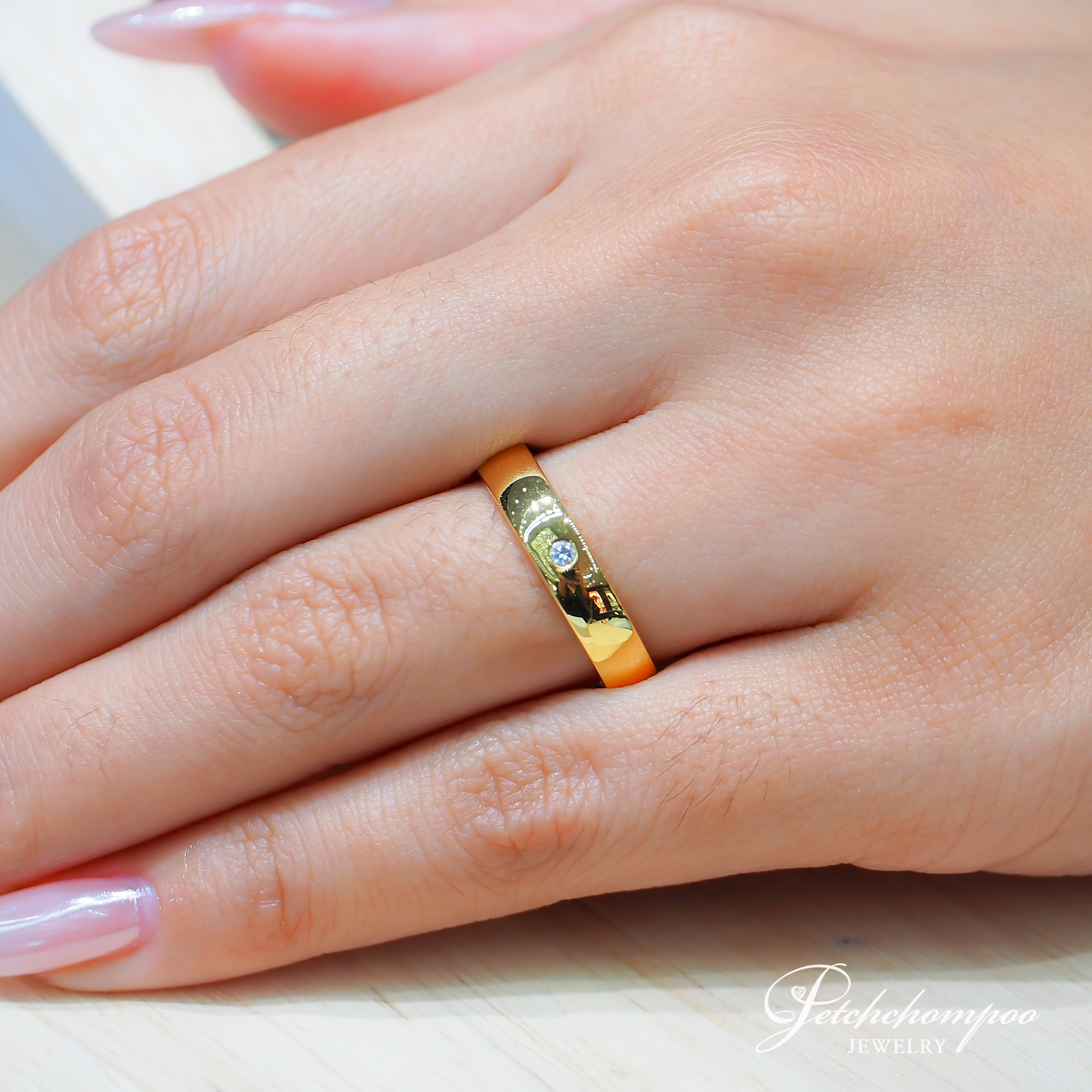 แหวนเพชรดีไซน์ Classic Minimal ที่เน้นความเรียบหรูและความลงตัวของเส้นสาย ตัวเรือนทองคำ 18K สีเหลืองเงางาม ให้ความรู้สึกอบอุ่นและคลาสสิก โดดเด่นด้วยเพชรเม็ดเล็กขนาด 0.03 กะรัต ฝังแบบ Flush / Bezel Setting บนตัวเรือนอย่างประณีต ทำให้เพชรดูเรียบเนียนไปกับผิวแหวน แต่ยังคงเปล่งประกายอย่างมีเสน่ห์ ดีไซน์นี้เหมาะสำหรับผู้ที่ชื่นชอบความเรียบง่ายแต่มีรายละเอียด เหมาะทั้งใส่ทุกวัน หรือใช้เป็น Couple Ring / Wedding Band ที่สื่อถึงความรักที่มั่นคงและยั่งยืน