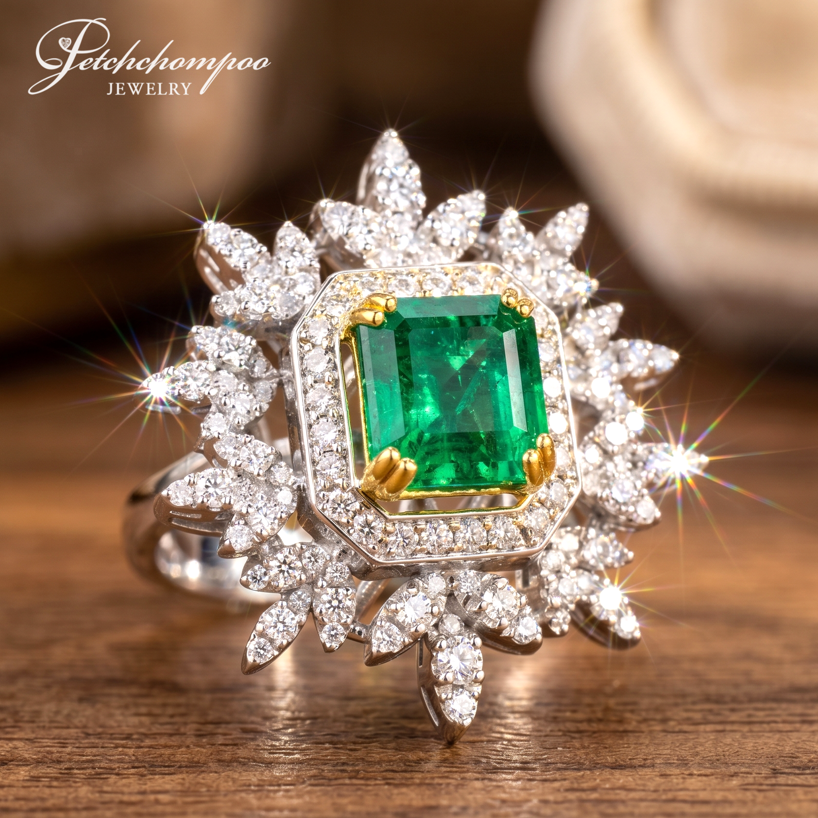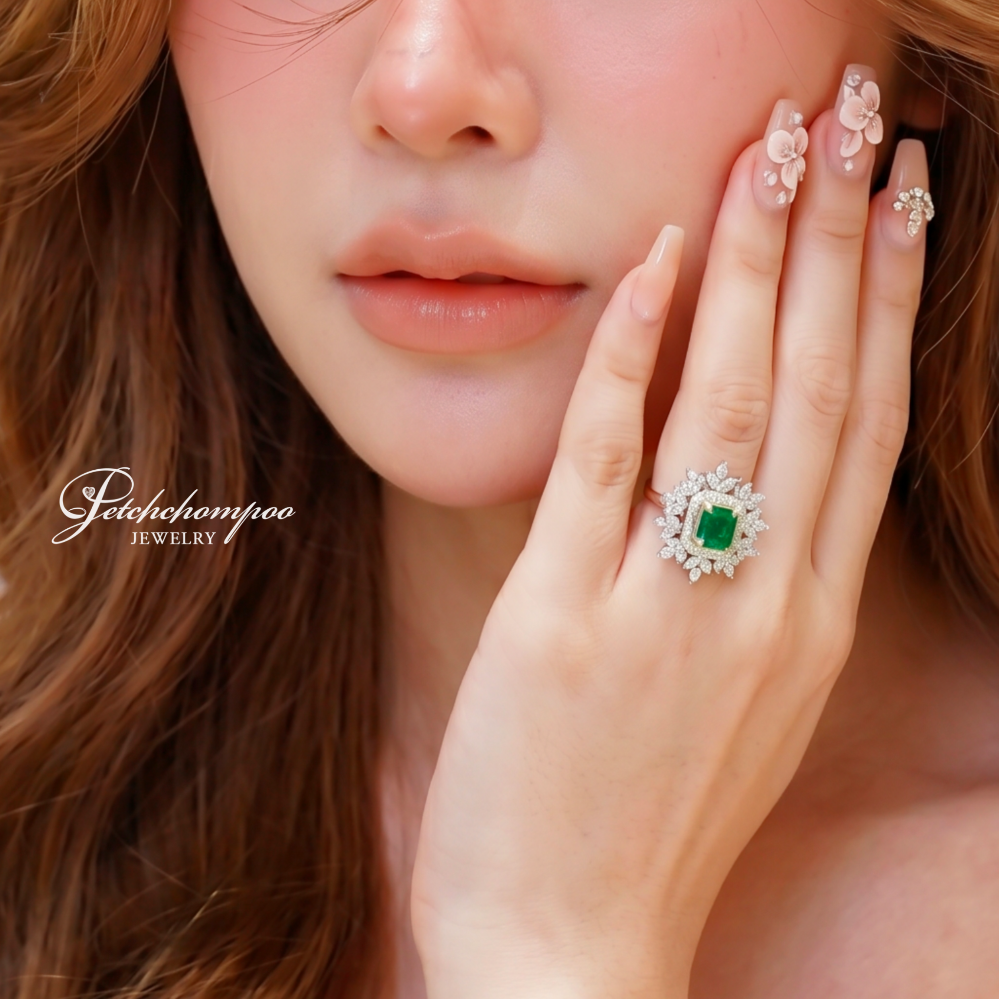 แหวนมรกตดีไซน์ระดับ High Jewelry ที่สะท้อนความสง่างามอย่างแท้จริง ด้วย มรกตแซมเบียสีเขียวสด (Vivid Green Zambia Emerald) ที่เปล่งประกายลึก ดุจพลังของธรรมชาติบริสุทธิ์ ตัวเรือนถูกออกแบบให้โอบล้อมด้วยเพชรทรงมาร์คีส์และเพชรกลม จัดเรียงเป็นรูปทรงคล้าย “มงกุฎ” หรือแสงอาทิตย์ที่แผ่กระจายออกจากศูนย์กลาง สร้างมิติแห่งความเปล่งประกายอย่างมีชั้นเชิง ทุกองค์ประกอบสะท้อนความอลังการแบบราชวงศ์ ผสานความอ่อนช้อยและความทรงพลังไว้อย่างลงตัว ⇒ เครื่องประดับที่ไม่ได้เป็นเพียงแหวน…แต่คือ “Statement of Prestige”