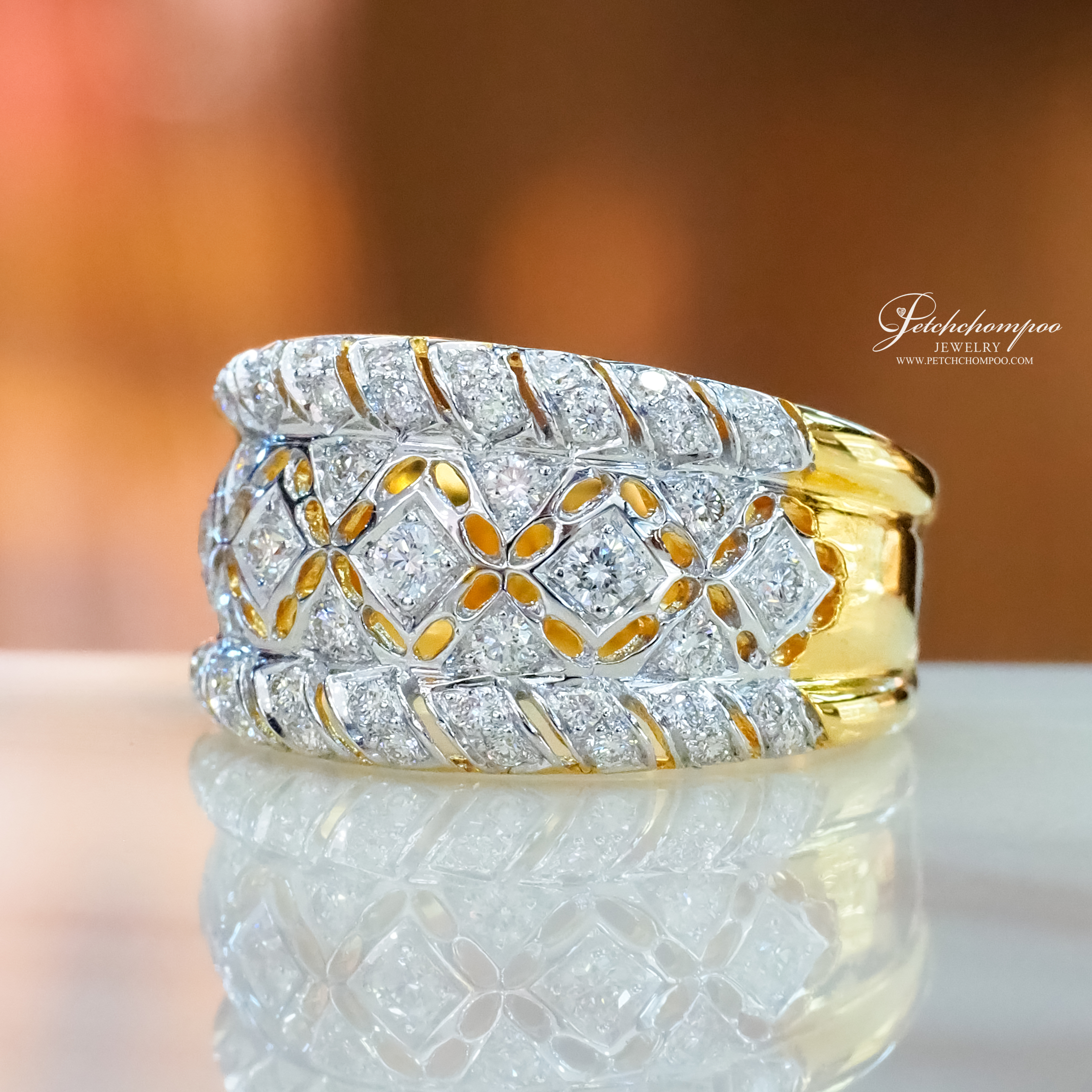 แหวนเพชร Royal Weave™ โดดเด่นด้วยดีไซน์ลายถักสุดประณีตที่รังสรรค์จากทองคำสองกษัตริย์ ผสมผสานเส้นสายลายเส้นสีทองและทองขาวอย่างมีมิติ ฝังเพชรแท้จำนวน 45 เม็ด น้ำหนักรวม 0.53 กะรัต บนตัวเรือนทองคำแท้หนัก 7.07 กรัม ทุกมุมมองสะท้อนความหรูหราสง่างามอย่างแท้จริง มาพร้อมใบเซอร์รับรองจาก GCI สำหรับผู้หญิงที่หลงใหลในงานศิลป์บนเครื่องประดับที่ไม่เหมือนใคร