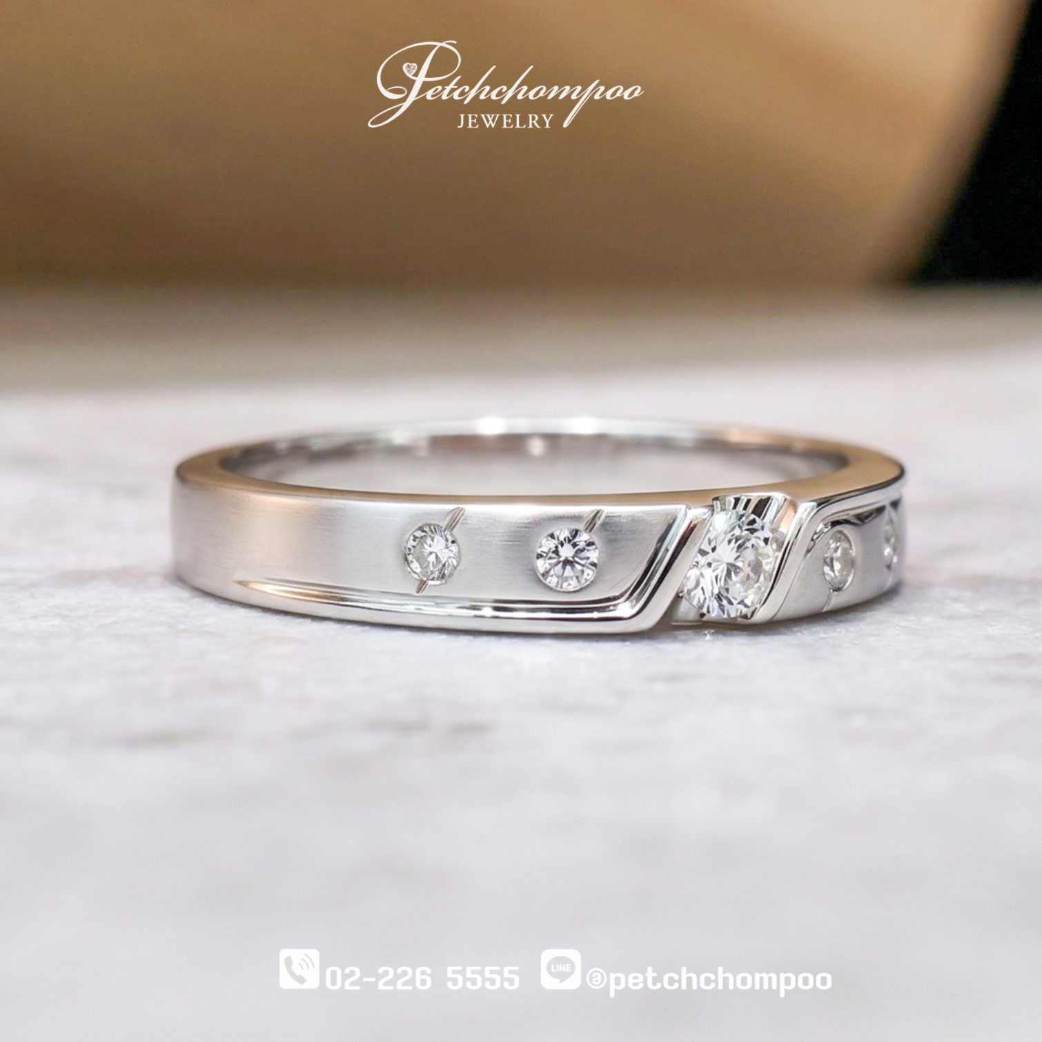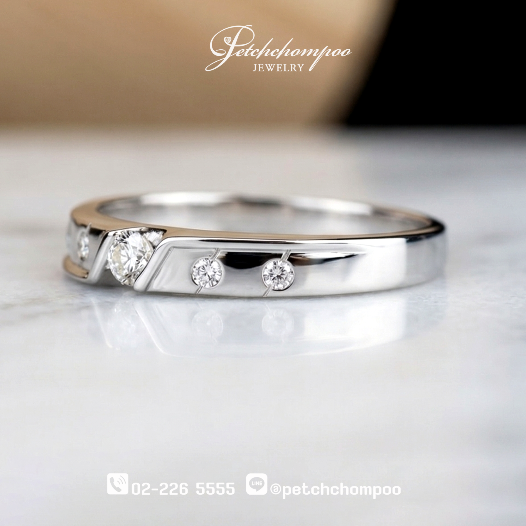 แหวนเพชรดีไซน์โมเดิร์นที่โดดเด่นด้วยเส้นสายเฉียบคมและการจัดวางเพชรแบบไม่สมมาตร สื่อถึงความทันสมัยและความมั่นใจในสไตล์ของผู้สวมใส่ เพชรเม็ดหลักขนาด 0.05 กะรัต ถูกจัดวางอย่างมีจุดเด่น พร้อมเพชรเม็ดเล็กที่เรียงตัวอย่างมีจังหวะบนตัวเรือน สร้างประกายระยิบระยับแบบ subtle luxury ที่ดูดีในทุกวัน ตัวเรือน ทองคำขาว 18K ผิวเงาสะท้อนแสง ช่วยเพิ่มความคมชัดให้กับดีไซน์โดยรวม เหมาะสำหรับคนรุ่นใหม่ที่ชื่นชอบความเรียบหรู แต่ยังคงความมีดีเทล