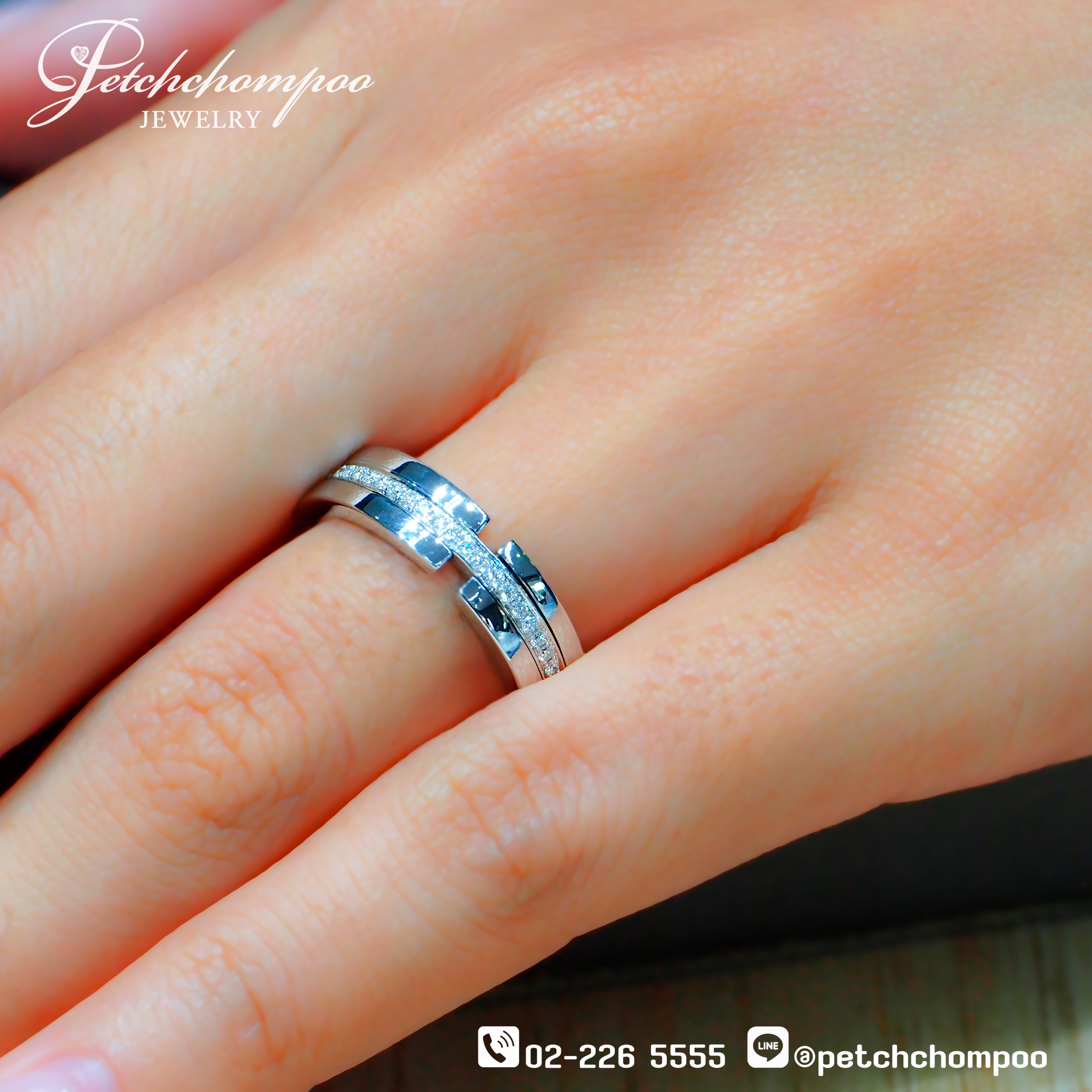 แหวนกางเขน Divine Cross ประดับเพชร ทองคำขาว สื่อพลังศรัทธา