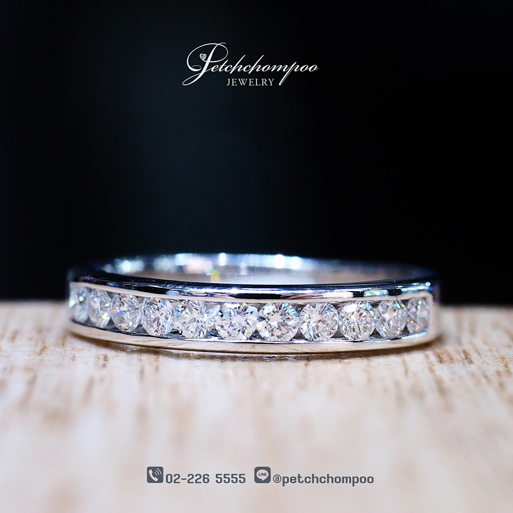 แหวนเพชรแถวดีไซน์คลาสสิกที่คงความงดงามเหนือกาลเวลา ตัวเรือนทำจาก ทองคำขาว น้ำหนัก 2.96 กรัม ฝังเพชรน้ำงามคุณภาพสูงจำนวน 11 เม็ด เรียงรายตลอดแนวอย่างประณีต ทำให้เห็นประกายเพชรที่ส่องสว่างเต็มวง รวมน้ำหนักเพชร 0.33 กะรัต เหมาะสำหรับเป็นแหวนแถวสวมคู่กับแหวนแต่งงาน หรือเป็นแหวนที่สวมใส่ได้ในทุกวันอย่างเรียบหรู