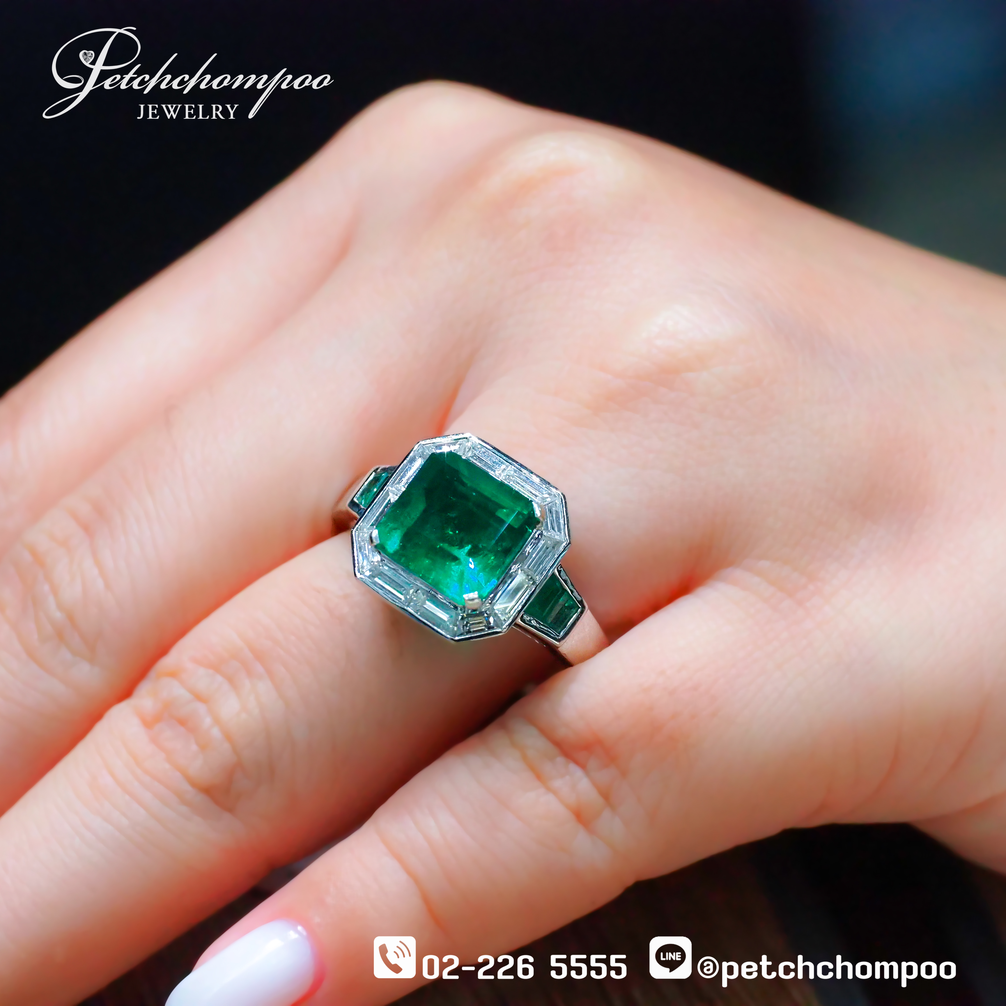 Petchchompoojewelry : เพชรชมพูจิวเวลรี่ : แหวนมรกตล้อมเพชร : แหวนมรกต