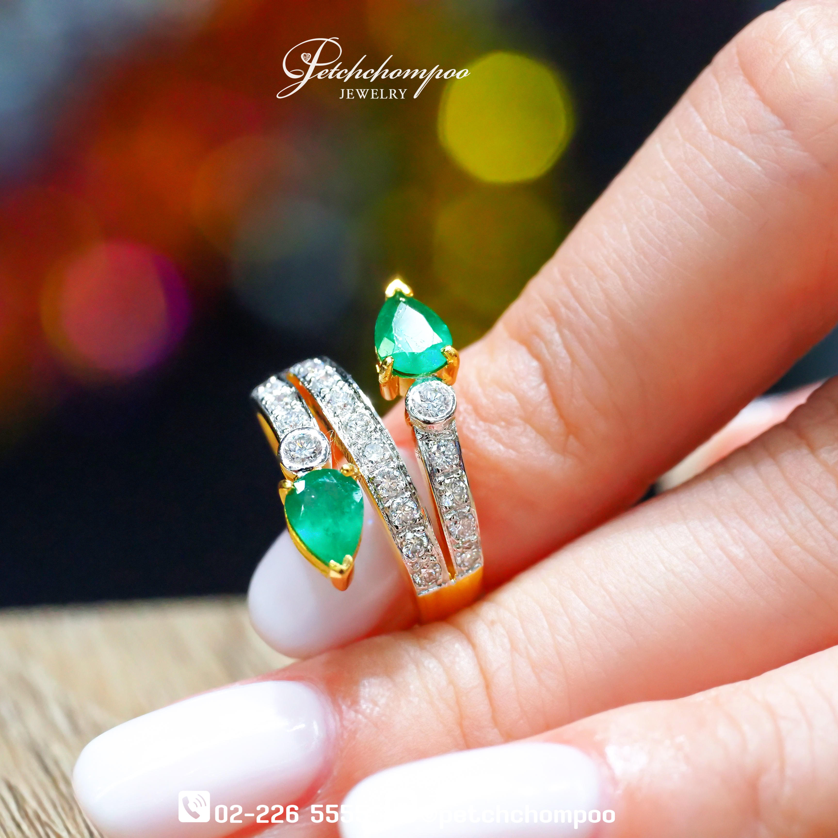 แหวนมรกต Emerald Petal Flow™ ไขว้ลายกลีบใบ