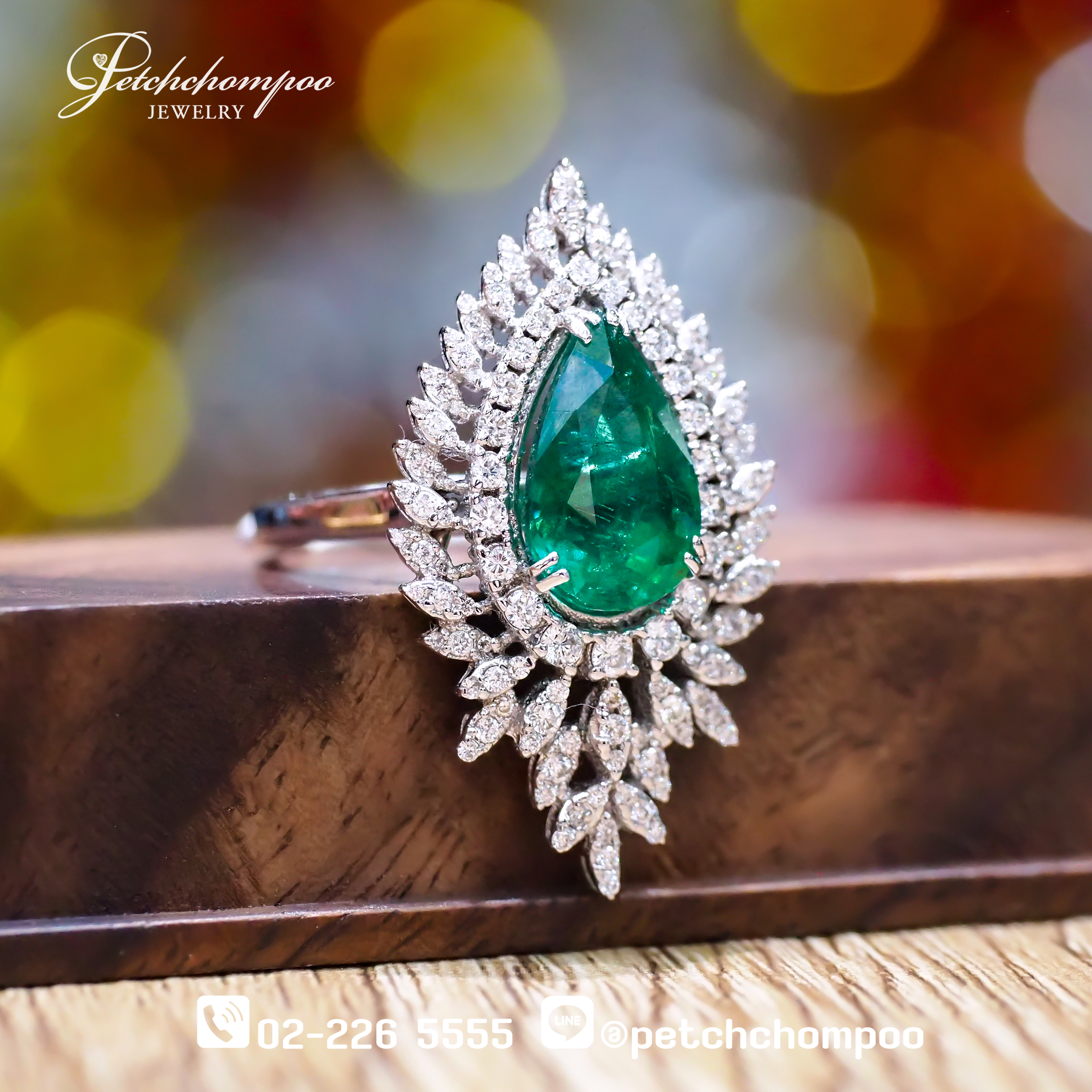แหวนมรกตแซมเบีย Emerald Feather Radiance™3.53 กะรัต ล้อมเพชรทรงขนนกสุดหรู
