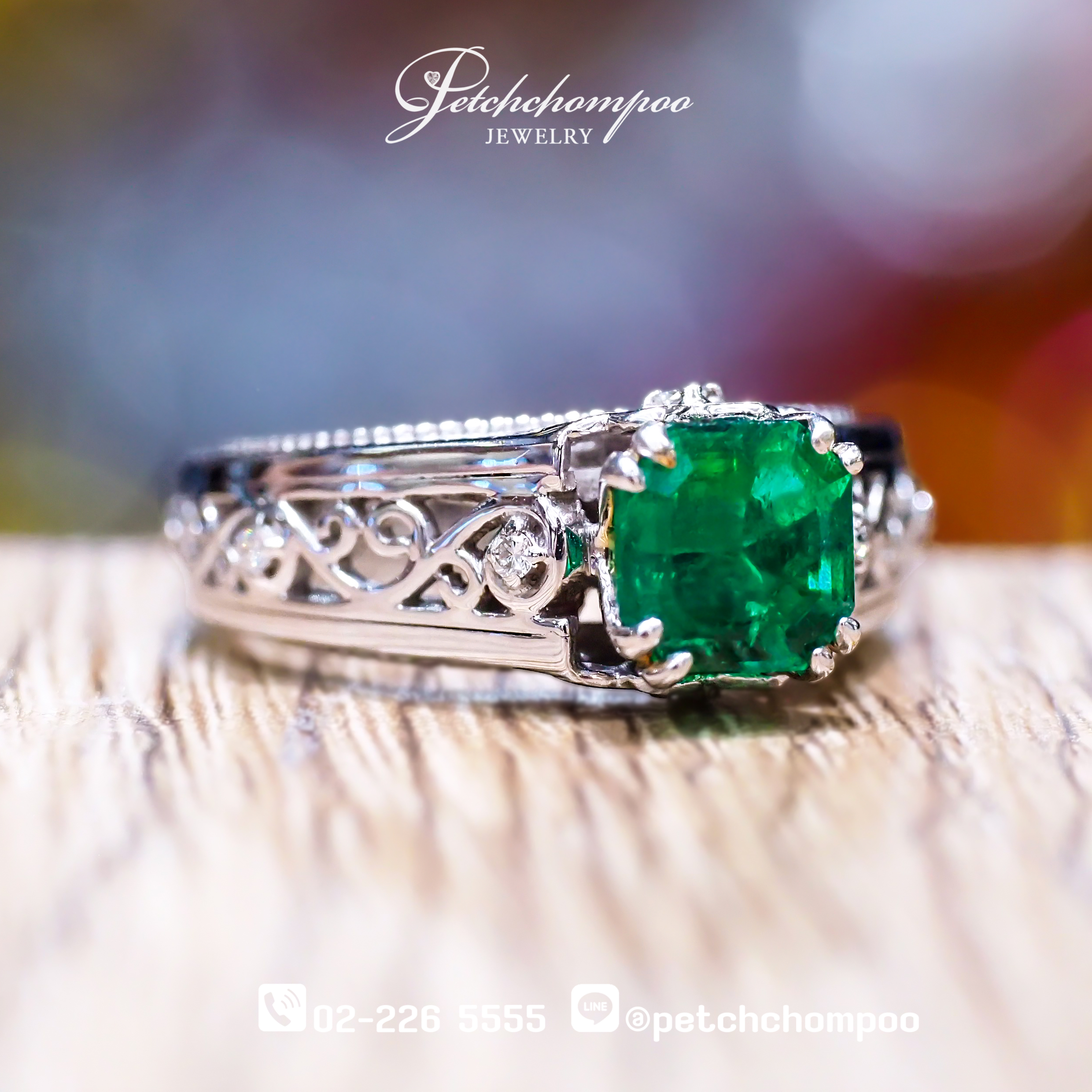 แหวนมรกตโคลอมเบีย Emerald Scroll™ 1.18 กะรัต ล้อมเพชร | Emil