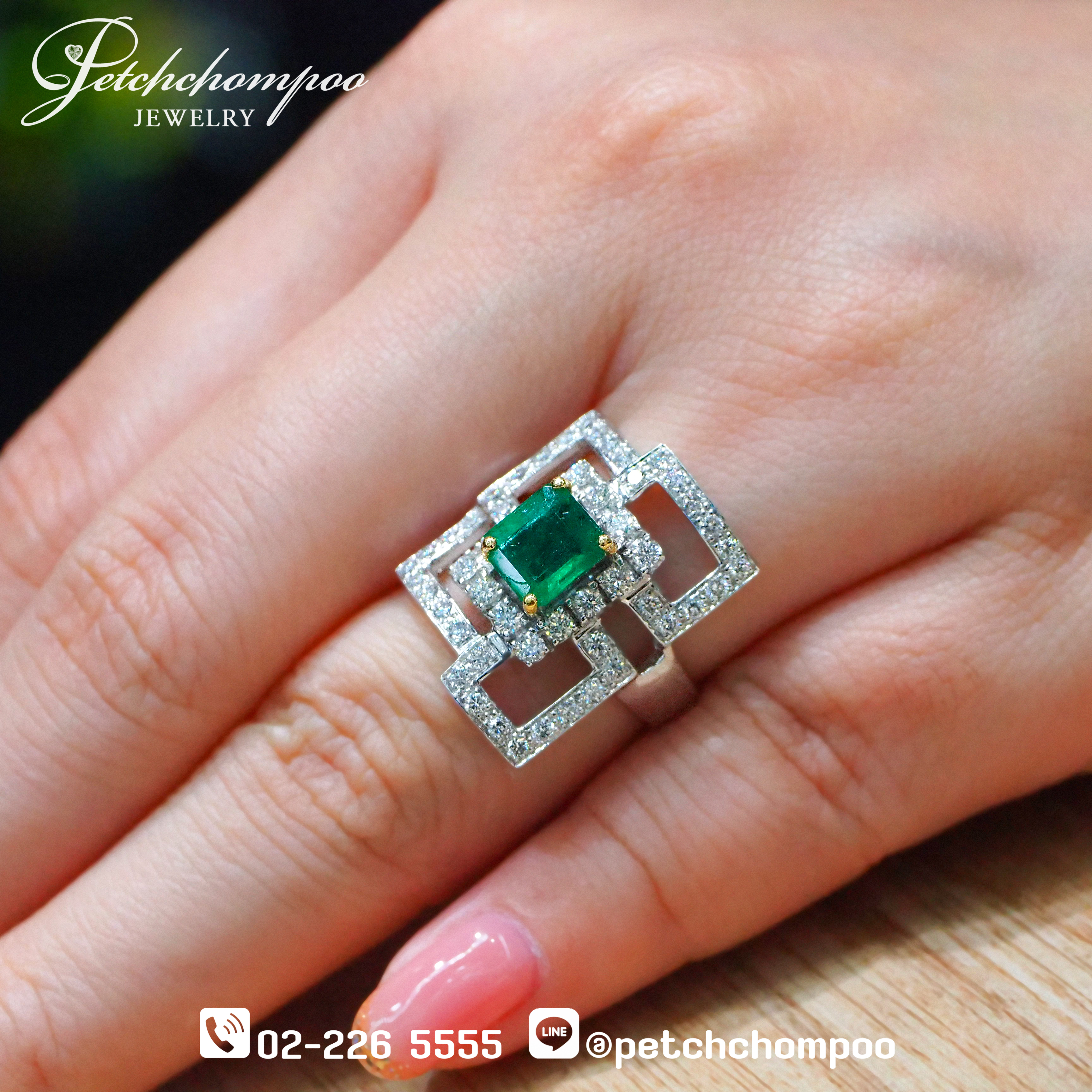 แหวนมรกตโคลอมเบีย  Verdant Prism™1.33 กะรัต ล้อมเพชร