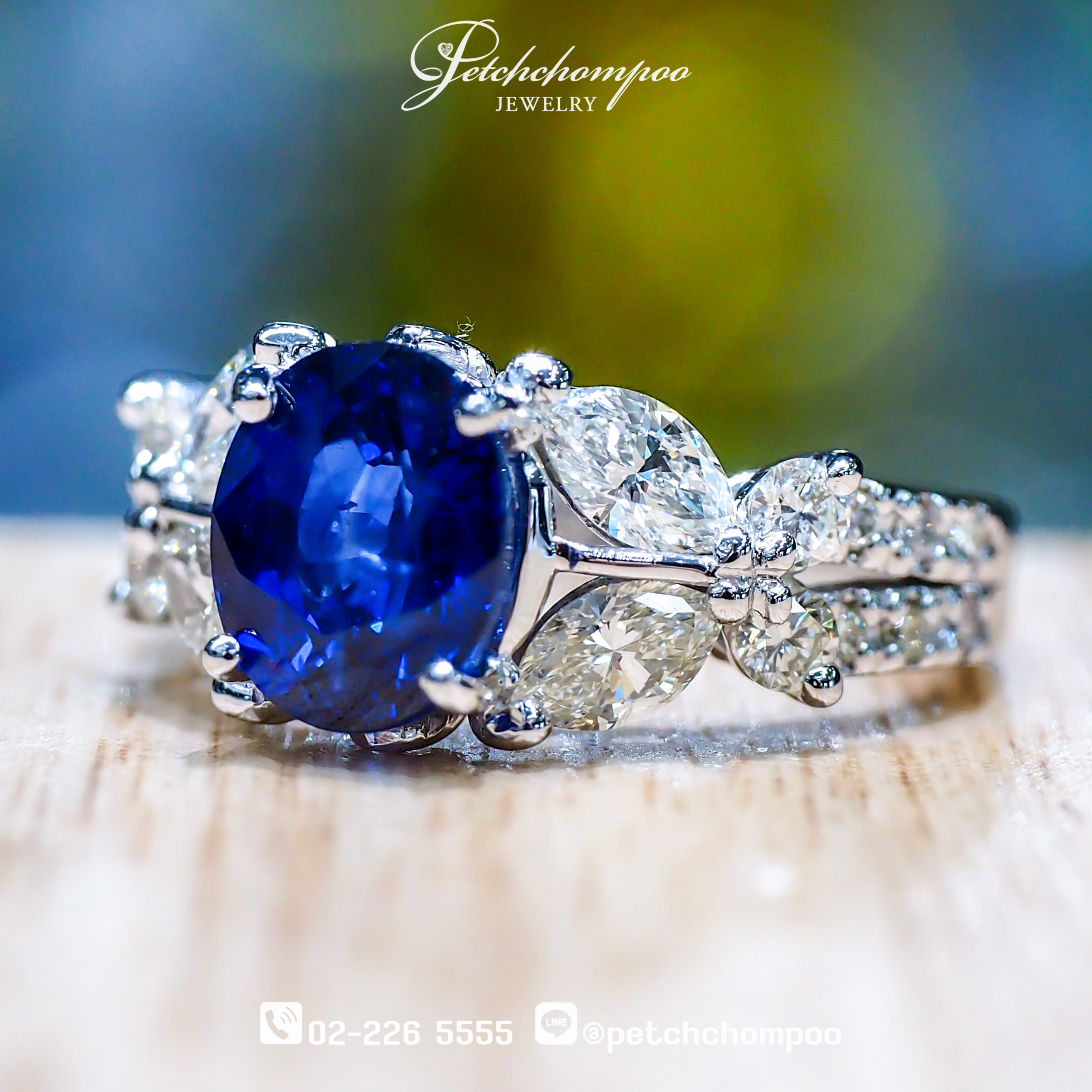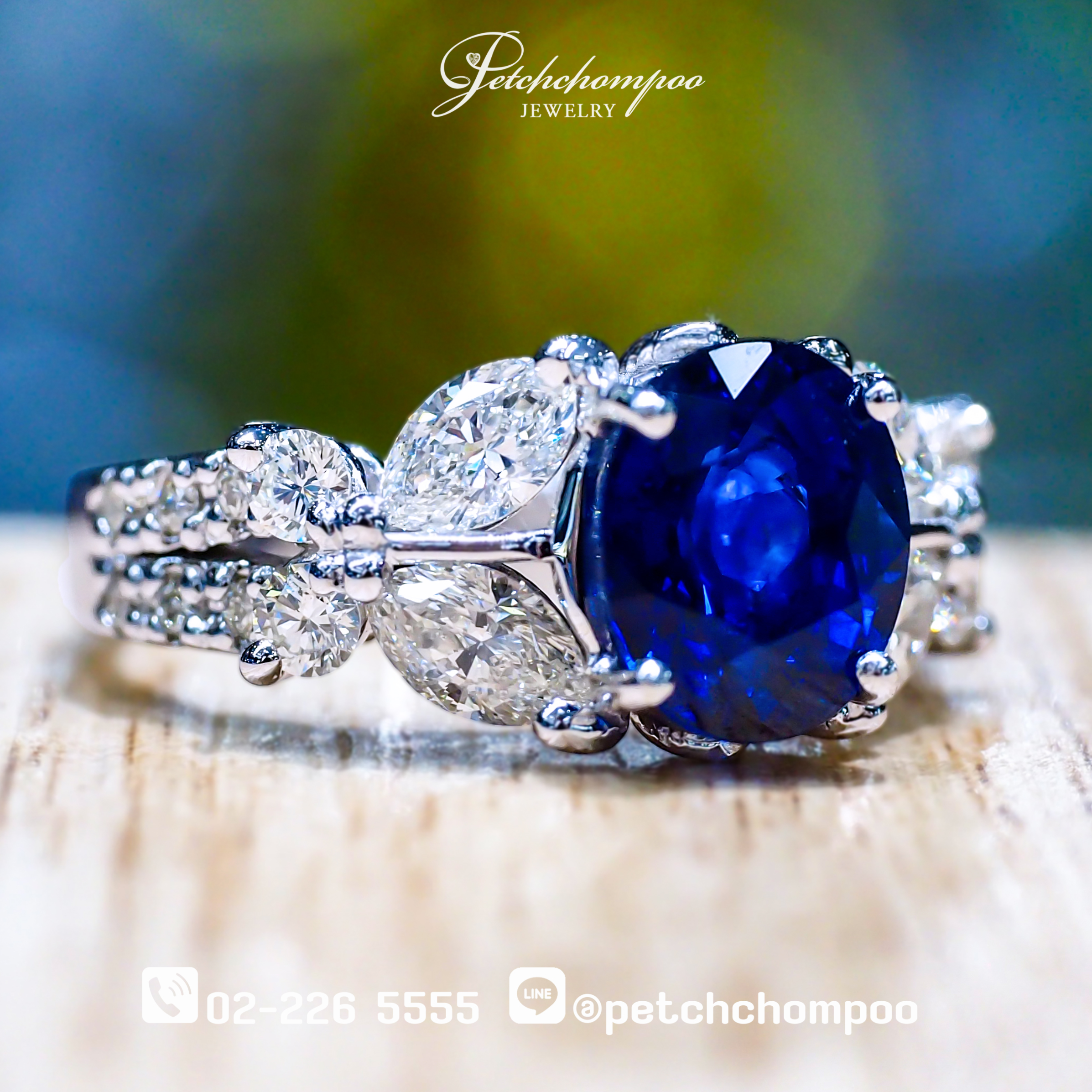แหวนไพลินซีลอน Ceylon Sapphire Étoile 2.13 กะรัต ล้อมเพชร | Emil