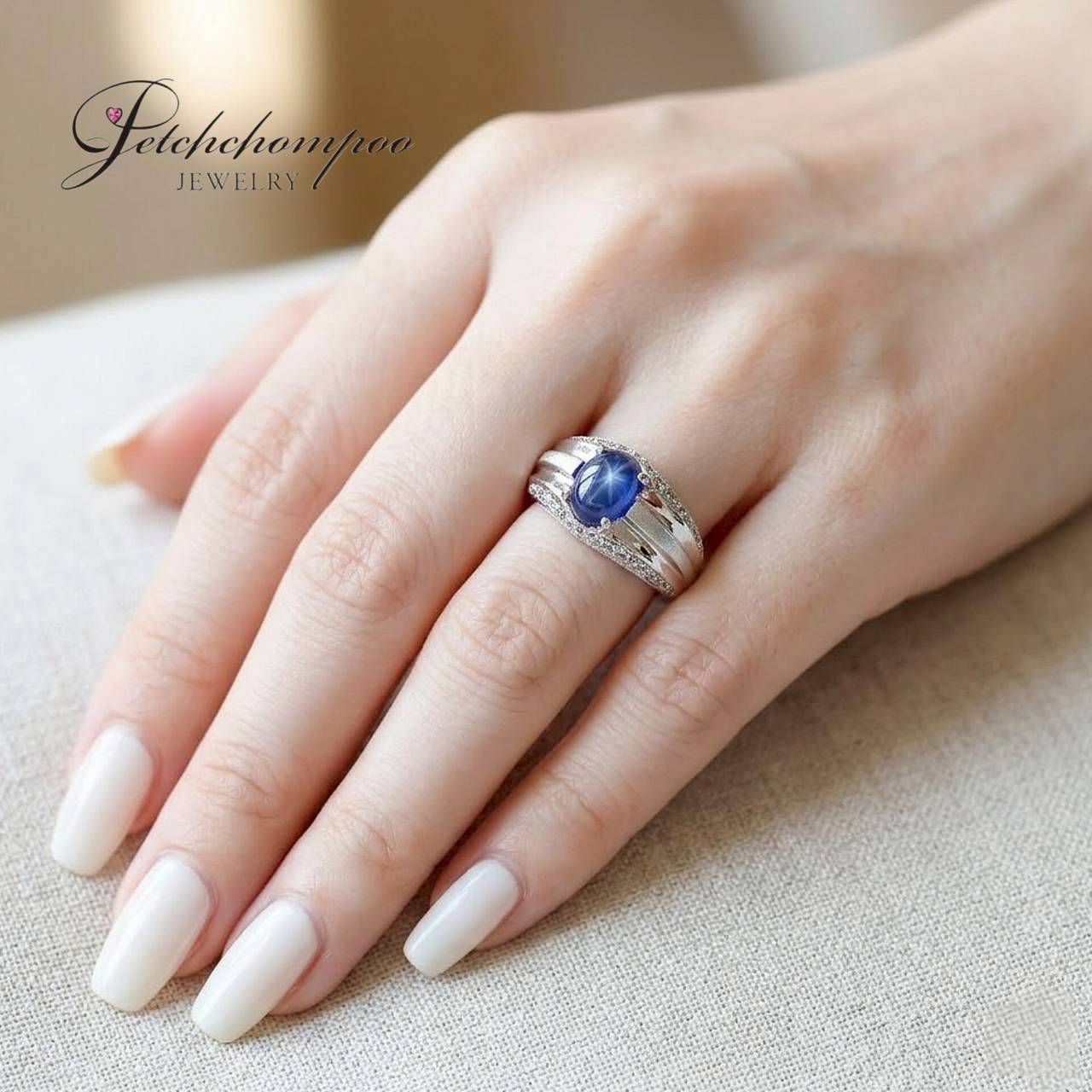 แหวนไพลิน Cabochon ดีไซน์โมเดิร์น “Blue Core”™ เพชร 0.15 กะรัต