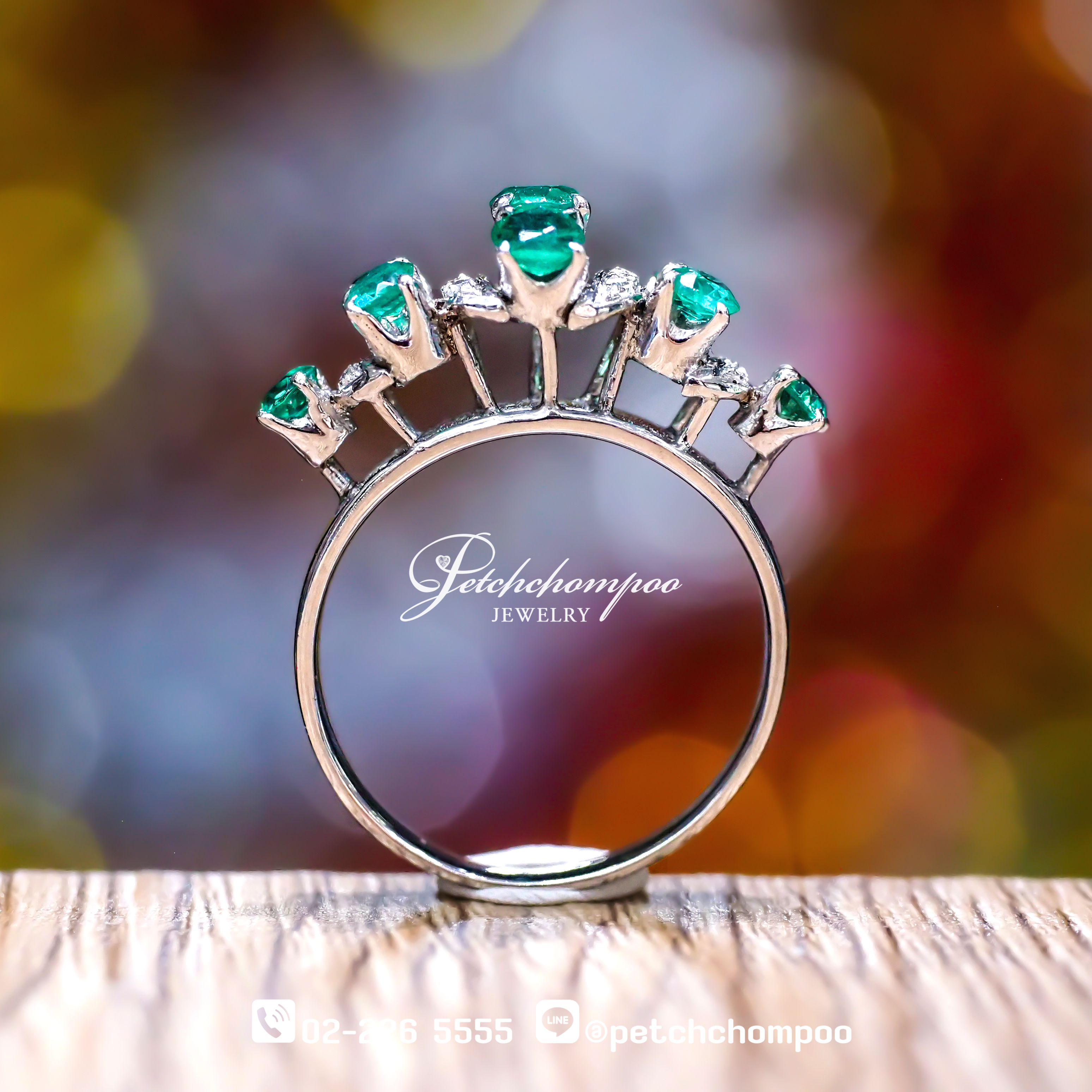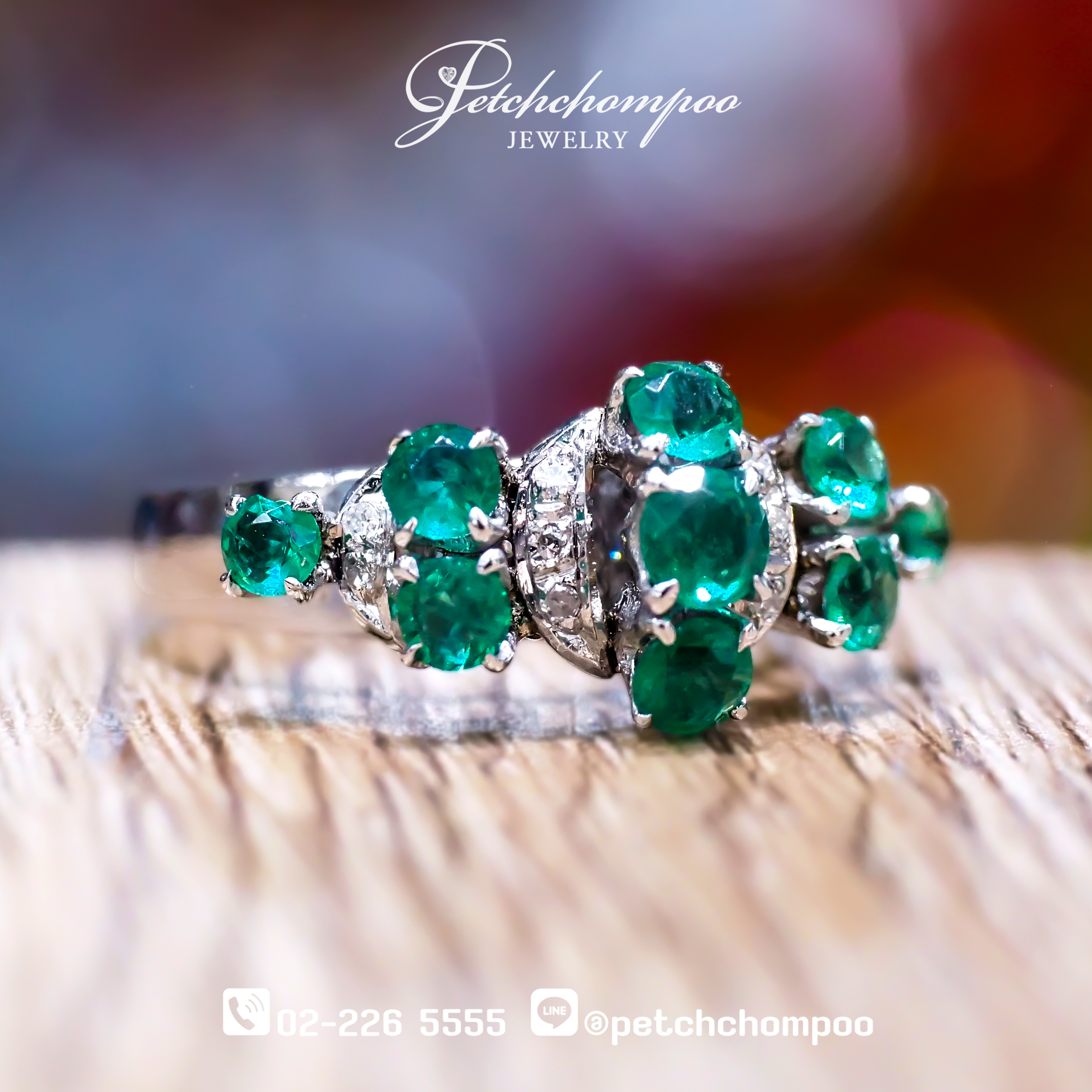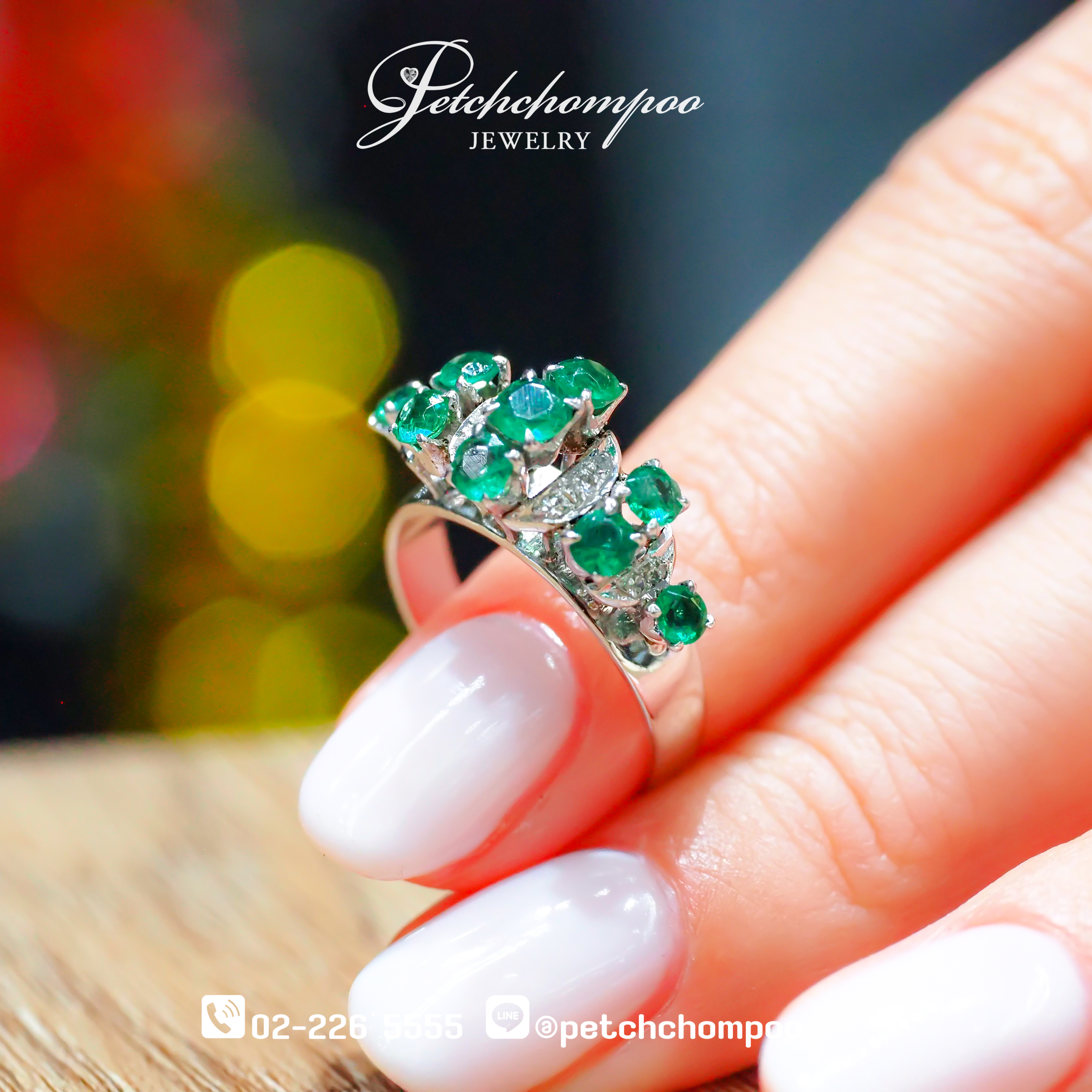 แหวนดีไซน์สวยคลาสสิกสะดุดตา ประดับมรกตโบราณแท้ 9 เม็ด น้ำหนักรวม 0.36 กะรัต เสริมด้วยเพชรเจียระไน 10 เม็ด รวม 0.10 กะรัต เพิ่มความแวววาวให้โดดเด่นยิ่งขึ้น ตัวเรือนทองคำขาวน้ำหนัก 3.64 กรัม สื่อถึงรสนิยมอันประณีตของผู้สวมใส่ เหมาะสำหรับผู้ที่หลงใหลเครื่องประดับที่เต็มไปด้วยเรื่องราวและความหมาย